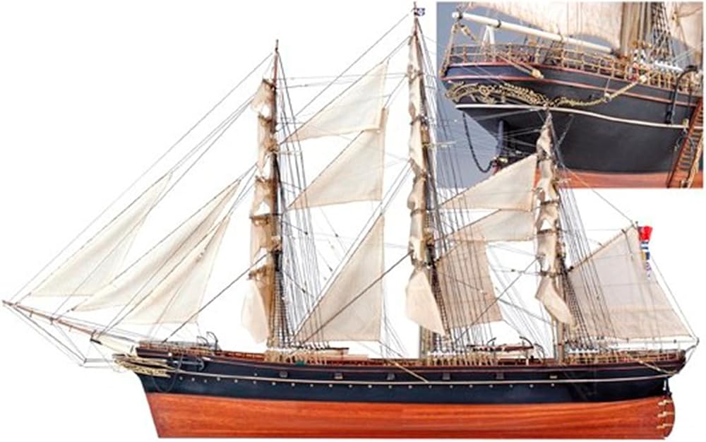 نموذج السفينة للبالغين. مجموعة النمذجة لبناء مستوى الخبراء. يتكون النموذج من أجزاء ألواح مقطوعة بالليزر عالية الدقة وأخشاب صلبة ونحاس وحديد الزهر وخيوط وأشرعة مصنوعة من القطن جاهزة للوضع. على سبيل المكافأة، فإنه يجلب أيضًا قاعدة عرض خشبية ليتم بناؤها. يحتوي هذا المركب الشراعي الجميل على نظام بناء يستخدم عارضة وإطارات زائفة، لذا فإن تجميع النسخة المتماثلة قريب من بناء المقص الحقيقي.