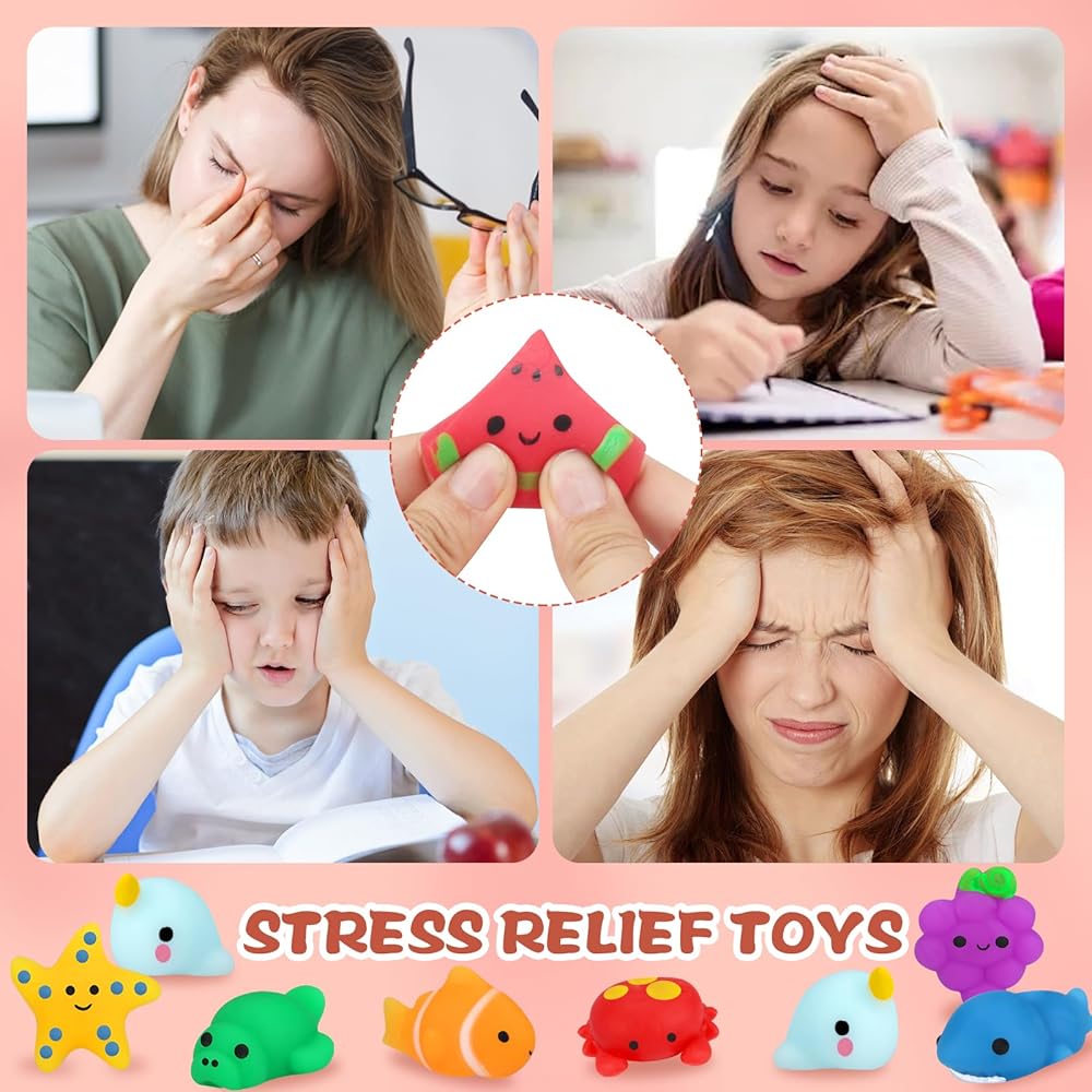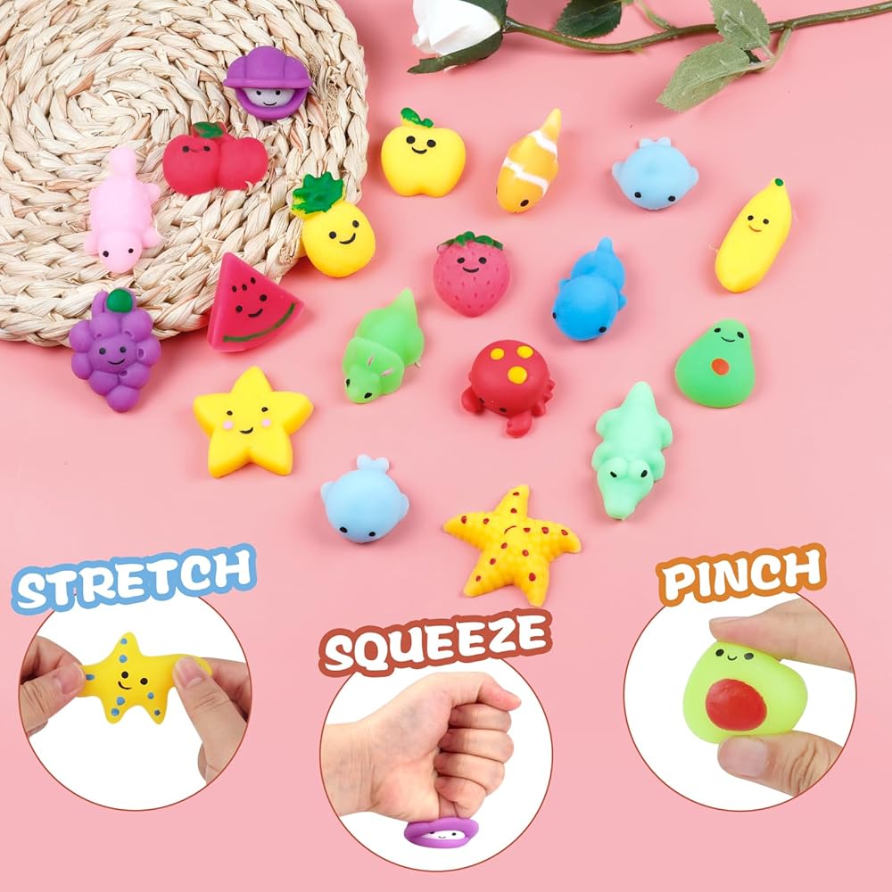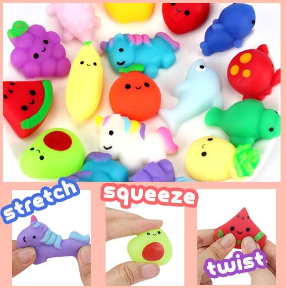 تصميم صغير لطيف - تأتي هذه الألعاب اللطيفة بتصميم لطيف وألوان زاهية. ألعاب موتشي الصغيرة ناعمة بشكل مدهش. لا يمكنك التوقف عن قرص الألعاب الصغيرة بسبب ملمسها الرائع. يمكن أن تساعد في تخفيف التوتر وزيادة الدورة الدموية في اليدين.