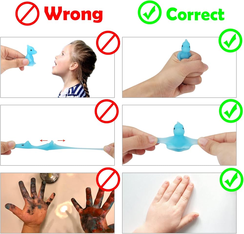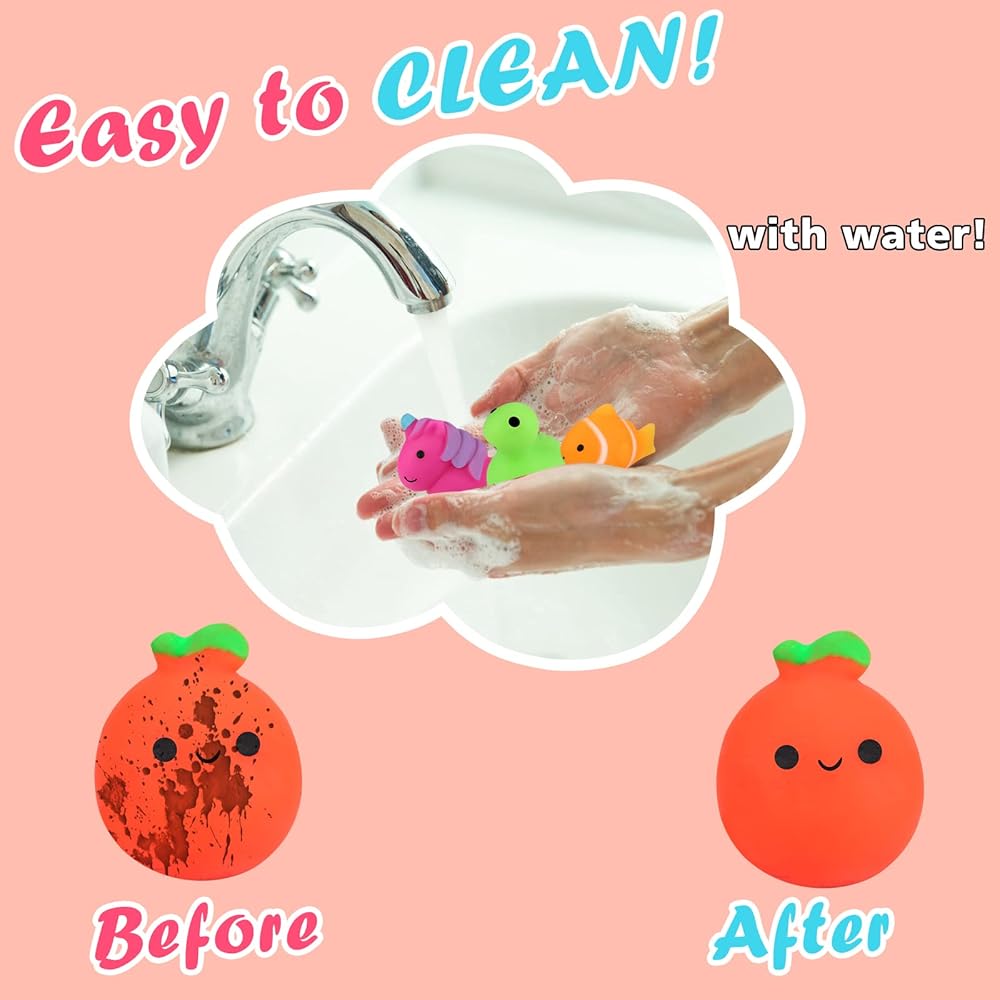 مادة قابلة للغسل - ألعاب موتشي هذه مصنوعة من مادة المطاط اللدن حراريًا عالية الجودة، وليس من السهل أن يتغير شكلها. يمكن شطف ألعاب تخفيف التوتر الصغيرة هذه بالماء مباشرة عندما تتسخ. فقط ضعي القليل من الصابون، وسيتم غسل البقعة.
