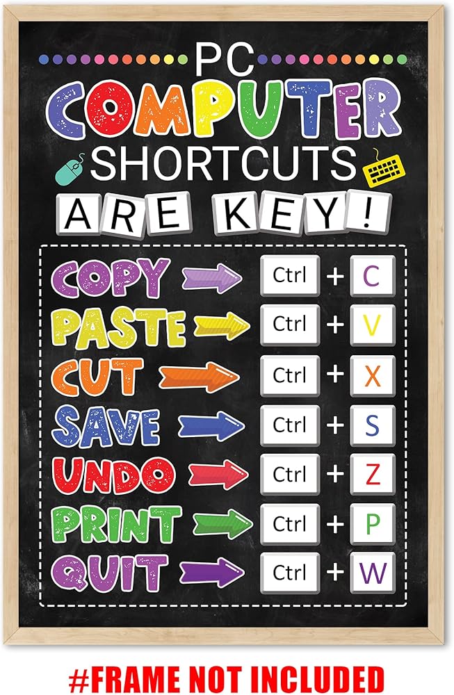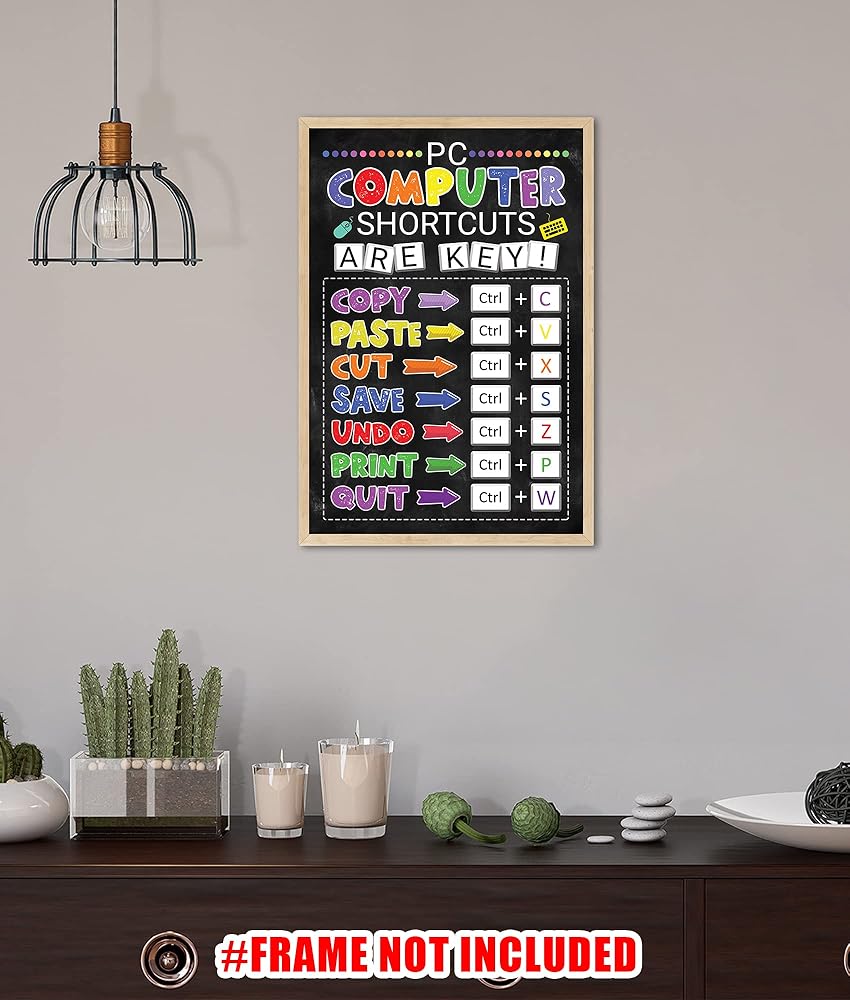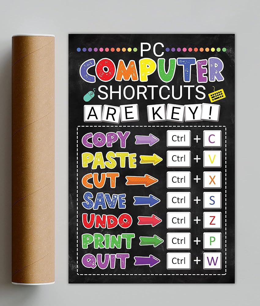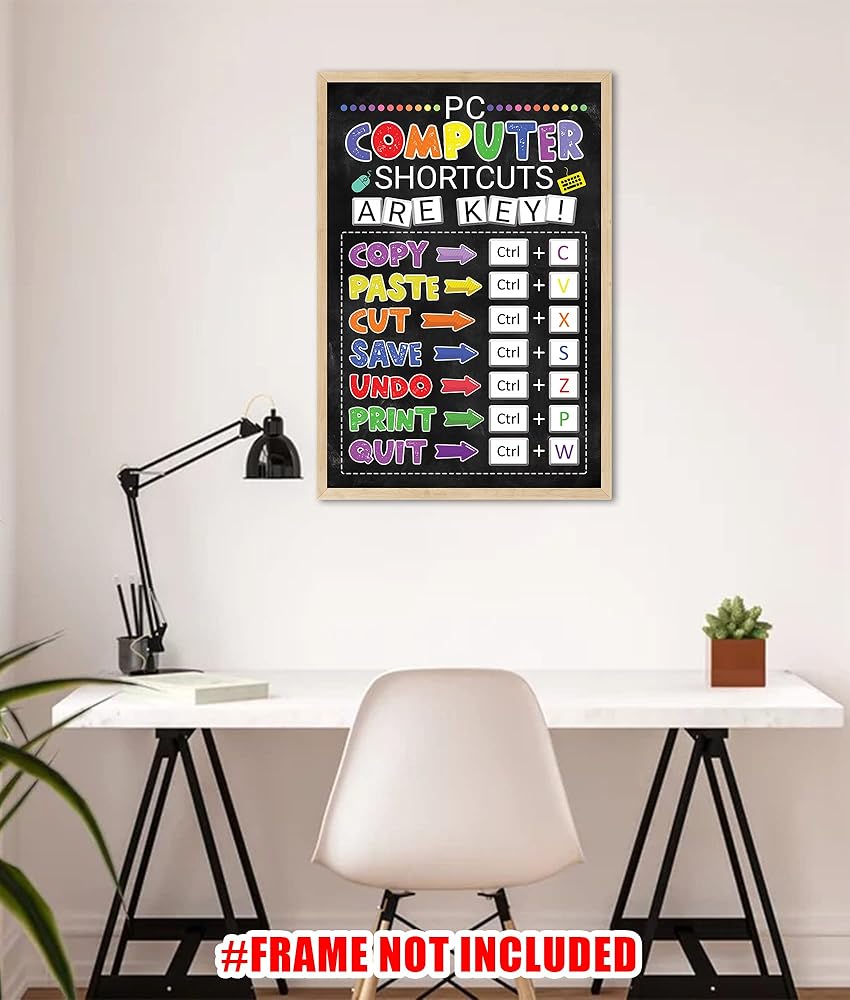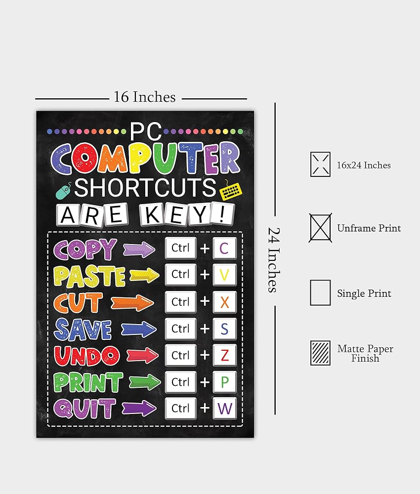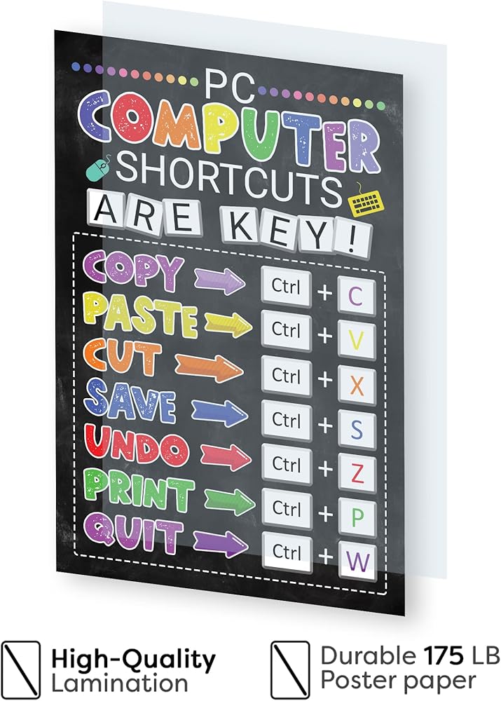 ✅ مع رسومات واضحة وموجزة، يتيح لك ملصق اختصار مختبر الكمبيوتر أن تجد نفسك تتنقل عبر البرامج والتطبيقات في وقت قصير. سيكون لديك وصول سريع إلى جميع الاختصارات الضرورية، مما يوفر لك الوقت والطاقة. هذه هي الأداة المثالية لأي شخص، من الطلاب إلى المحترفين، الذين يتطلعون إلى زيادة مهاراتهم في الكمبيوتر وتحسين سير عملهم. بالإضافة إلى ذلك، فهي إضافة رائعة لأي مكتب أو فصل دراسي.