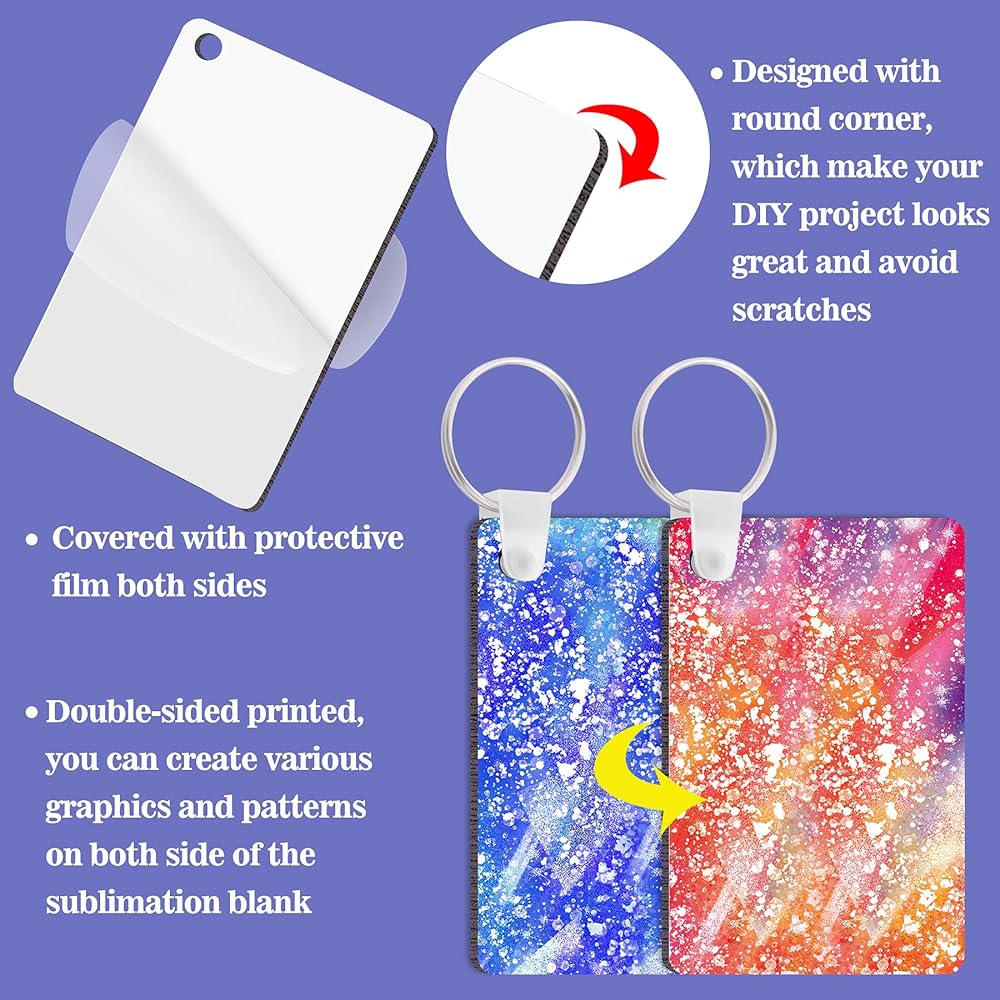 مطبوعة على الوجهين: فراغات سلسلة المفاتيح Duufin retangle sublimation مطبوعة على الوجهين، يمكنك إنشاء صورة أو نمط مختلف على كلا الجانبين، الفراغات ناعمة وسهلة التسامي، مثالية لتعزيز القدرة العملية وإلهام الخيال؛ كلا جانبي MDF الفارغ مغطى بطبقة واقية، فقط قم بتمزيقهما ببطء وستحصل على مستطيل أبيض فارغ لنقل الحرارة بحواف ناعمة