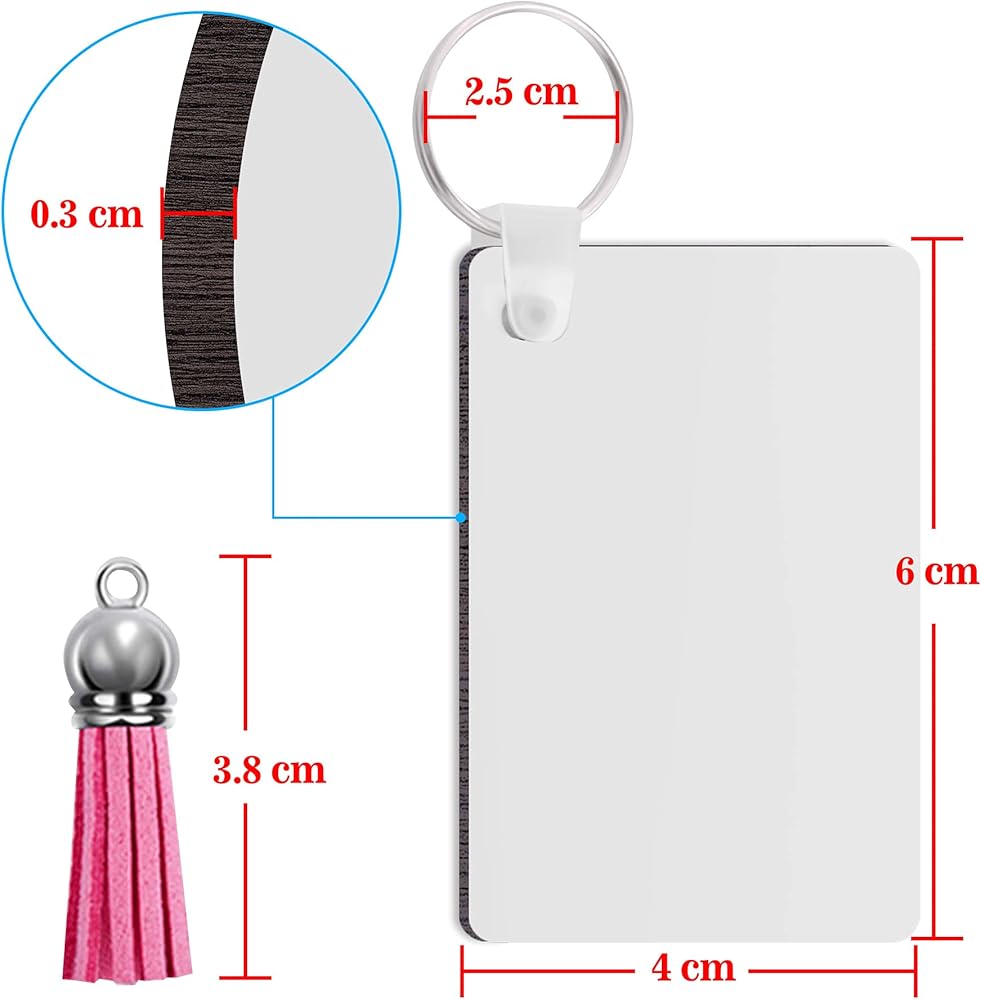 مجموعة Duufin 200 قطعة من سلسلة المفاتيح التسامي الفراغات مستطيلة لنقل الحرارة وشرابات سلسلة المفاتيح مع حلقات مفاتيح MDF فارغة للتسامي، مطبوعة على الوجهين
