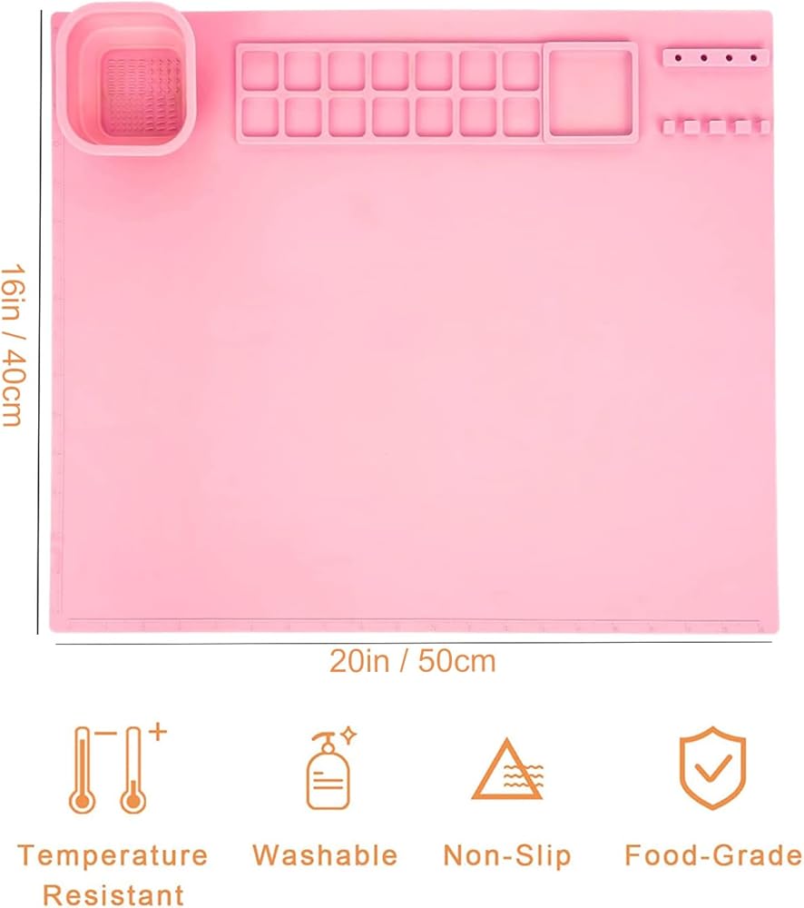 سجادة حرفية من السيليكون من كريهونفا مع كوب تنظيف وحامل طلاء قابلين للإزالة، بساط طلاء من السيليكون غير لاصق مع علامة الطول، بساط رسم، بساط فني لفن راتنجات الإيبوكسي، والطين والإبداعات اليدوية (وردي)
