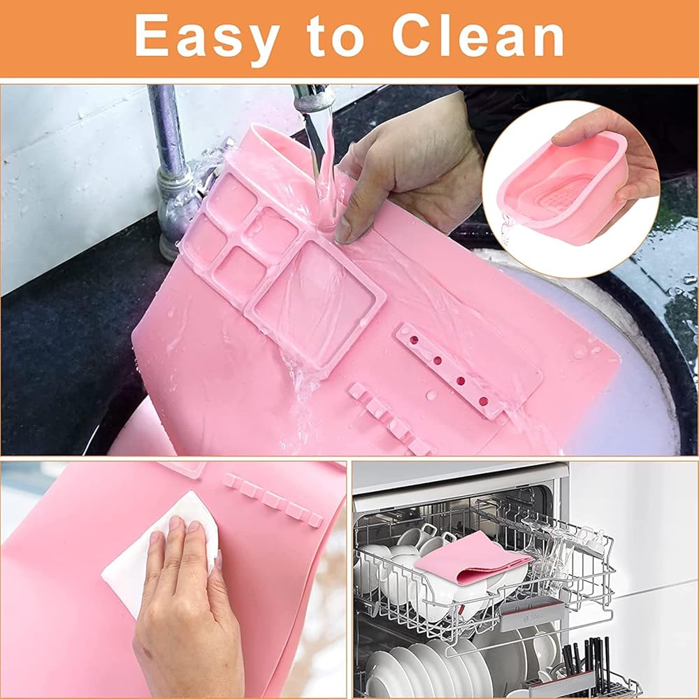 【استخدام متعدد الاستخدامات】تتميز سجادة السيليكون هذه المزودة بكوب وحامل طلاء بتصميم غير لاصق، مما يجعلها مناسبة لأغراض مختلفة. إنها قابلة للطي والغسل، مما يسمح لك بأخذها إلى أي مكان لفصول الرسم للأطفال الصغار والحرف اليدوية وعجين اللعب والحرف اليدوية.