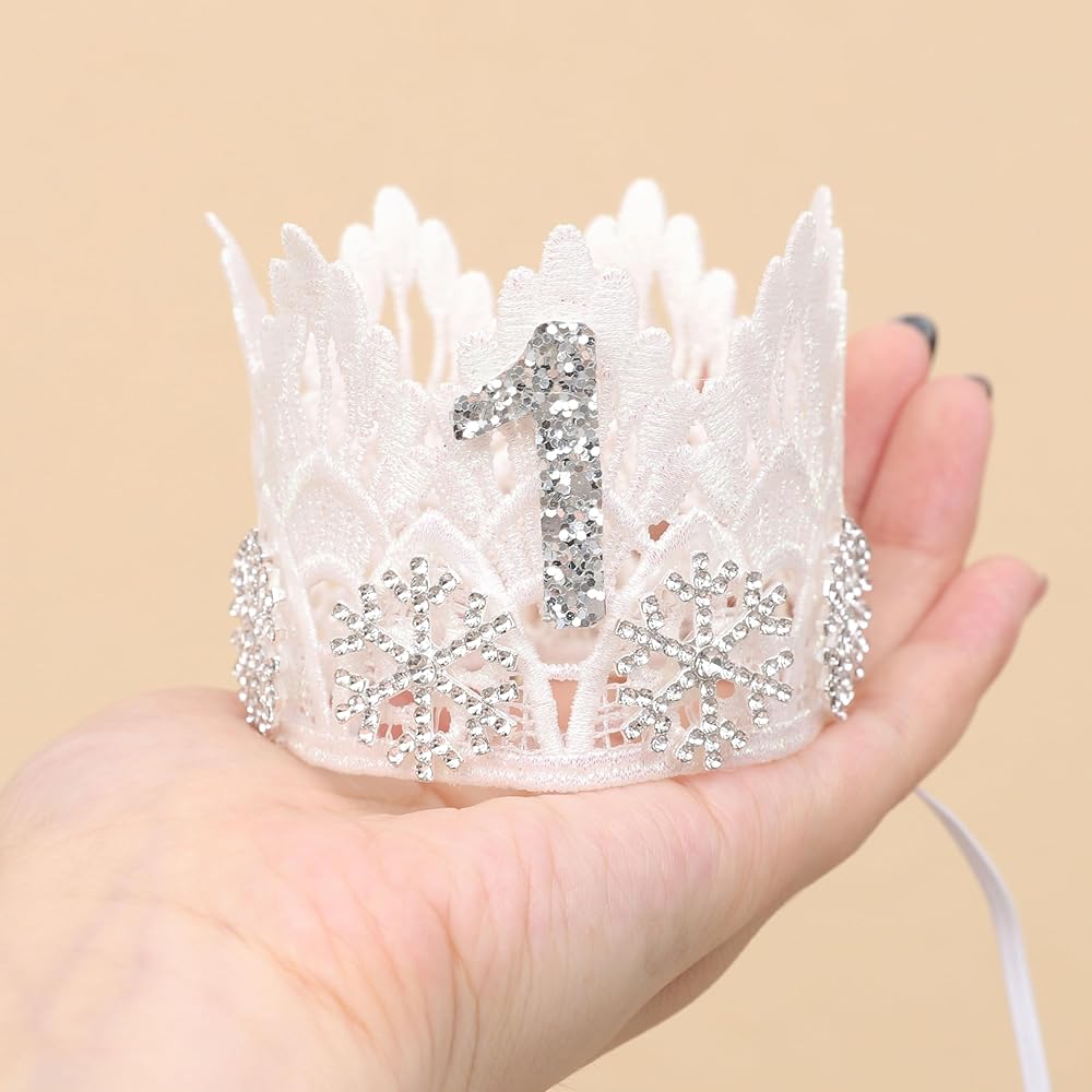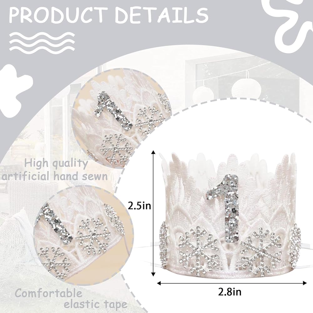 • نمط الشتاء: يتميز تاج ندفة الثلج الأبيض بتصميم دانتيل بلوري رقيق وجميل، وهو مناسب جدًا لحفلات أعياد الميلاد الشتوية وجلسات التصوير الفوتوغرافي الشتوية وحفلات الكريسماس. إنها دعامة عيد ميلاد جميلة جدًا للفتيات الصغيرات بعمر عام واحد.