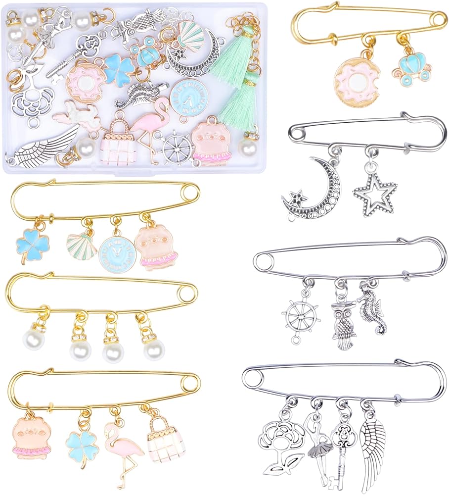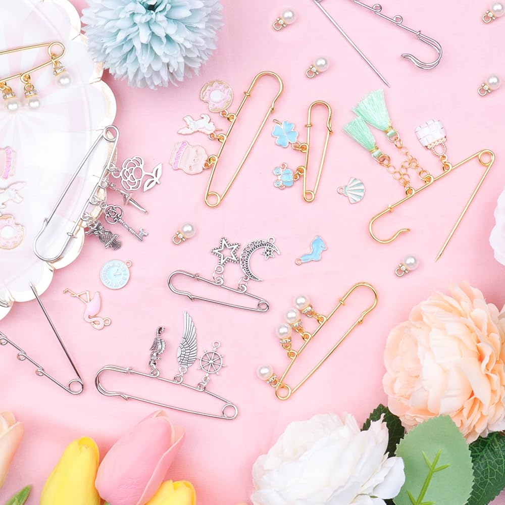 【Quality and Strong】 The safety pins are mainly made of quality alloy, you can decorate them with these beautiful charms or pearls, shiny and elegant, strong and reliable to wear, not easy to rust and break.