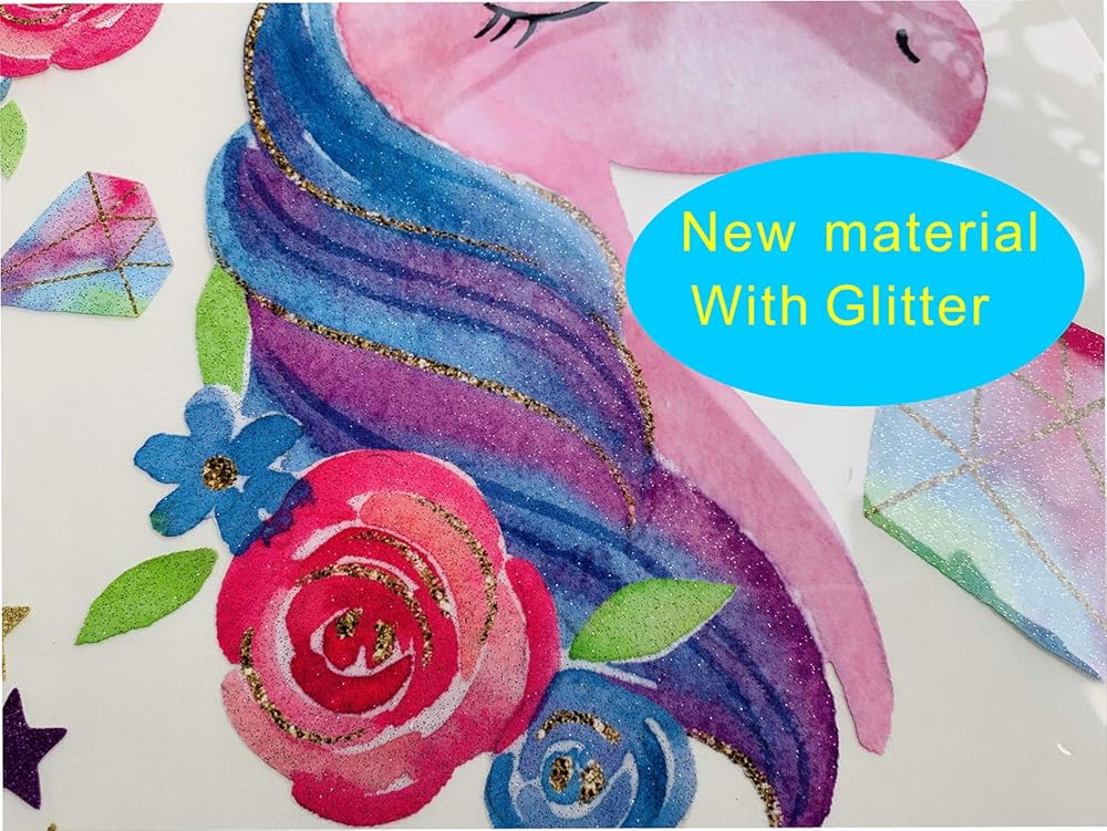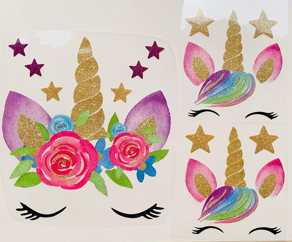 مجموعة من 3 رقع قماشية قماشية قماشية قماشية قابلة لإعادة الشحن بنمط وحيد القرن مع زهور ونجوم صديقة للبيئة من 3 قطع للديكور بنفسك باللون الوردي EASU001