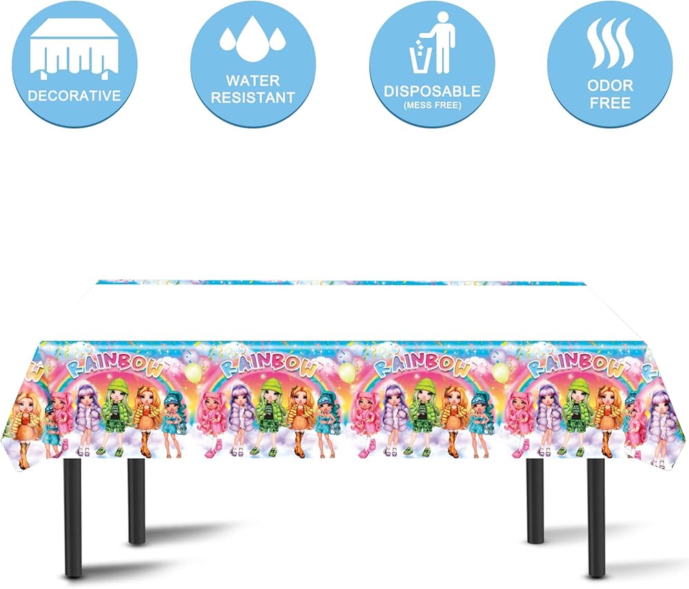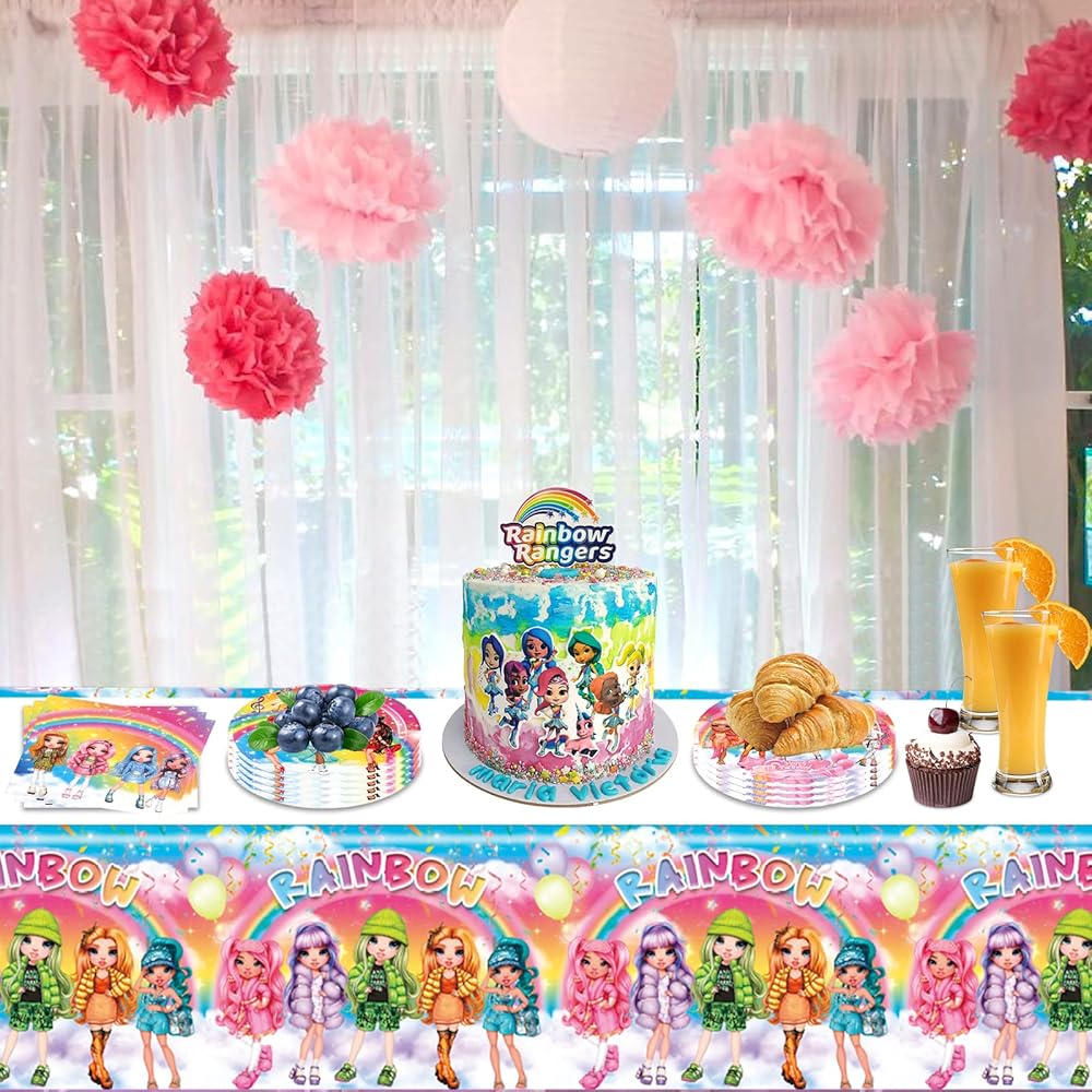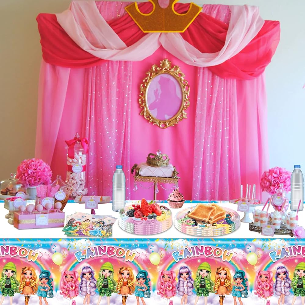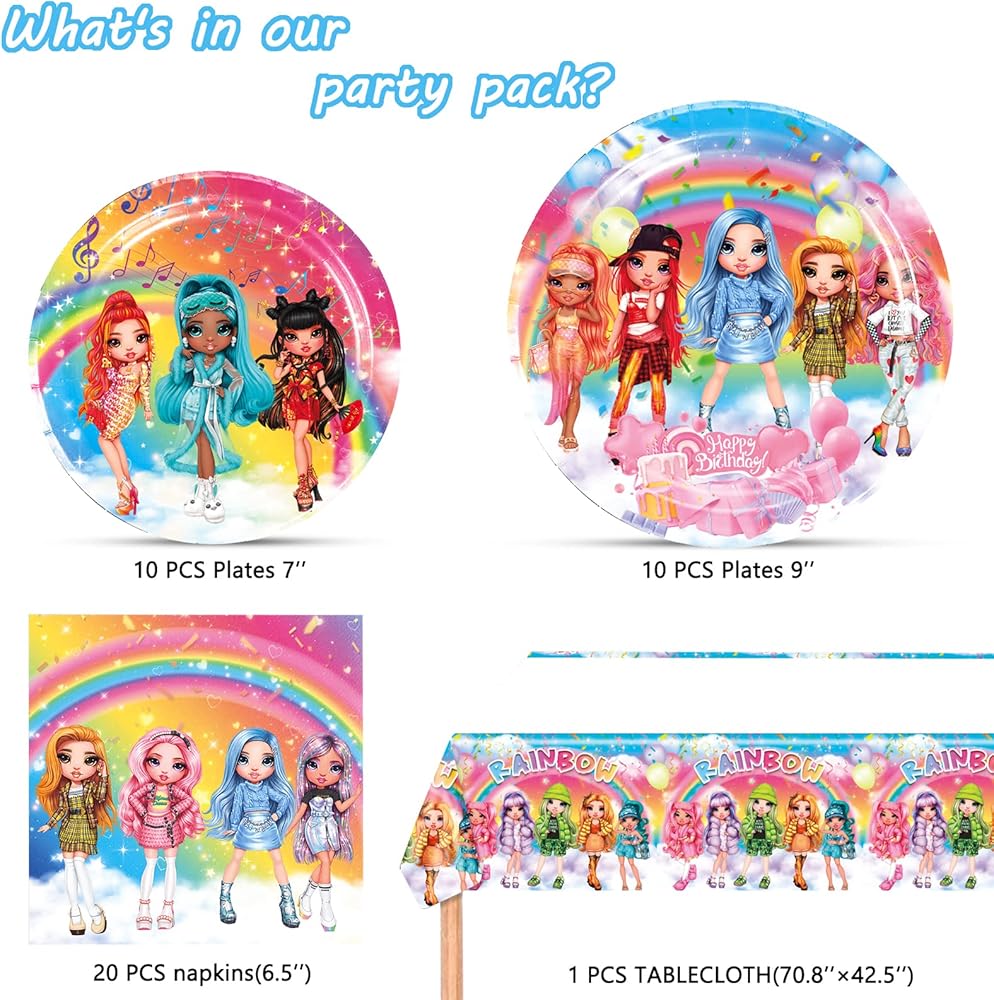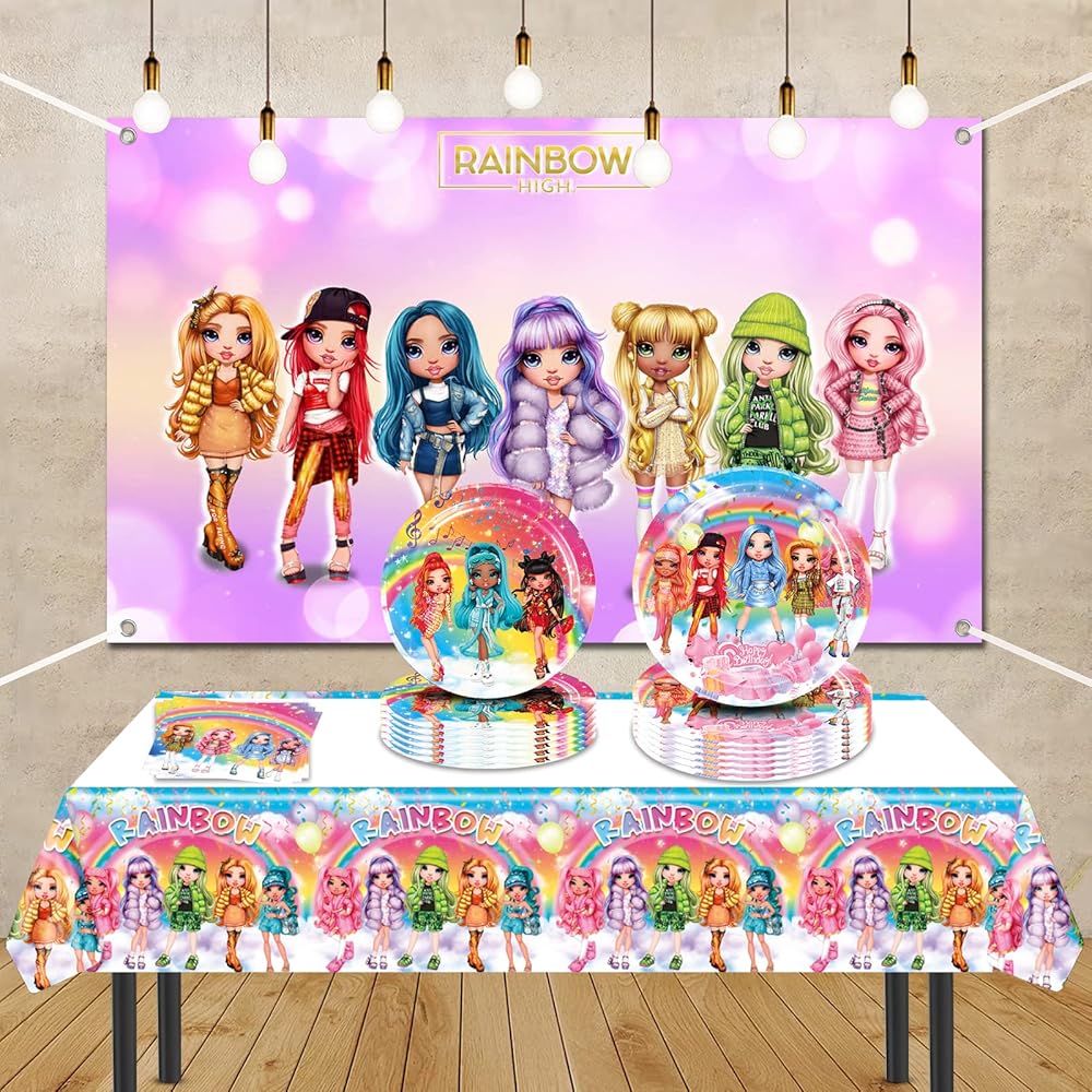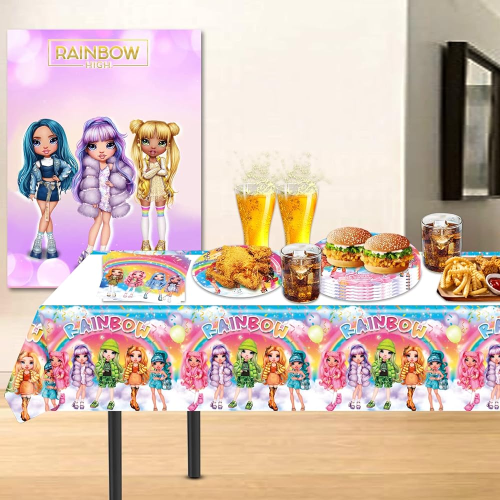 【Package Includes】 10*7inch Plates, 10*9inch Plates, 20*Napkins, 1*Tablecover, ideal for Rainbow High Dolls theme parties.