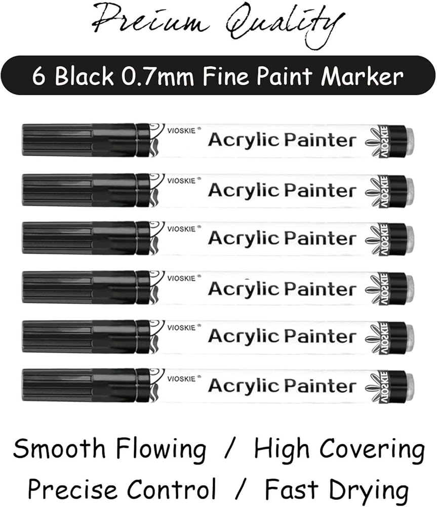 【محتويات العبوة】: 6 عبوات من أقلام التحديد الدائمة المصنوعة من الأكريليك المائي ذات الطرف الدقيق للغاية بمقاس 0.7 ملم