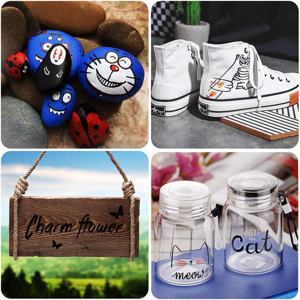 【يستخدم على أي سطح تقريبًا】يستخدم قلم تحديد الطلاء الأسود الأكريليك للرسم الزخرفي والإبداع الفني ومشاريع الرسم اليدوية العامة. يمكن استخدامها على أي سطح تقريبًا. بما في ذلك الخشب والبلاستيك والجلد الصخري والزجاج والمعدن والقماش والسيراميك وما إلى ذلك. تنوع استخداماته لا مثيل له، ويمكن استخدامه من قبل أكثر الفنانين موهوبين أو من قبل مبتدئ في إنشاء المشروعات الحرفية.