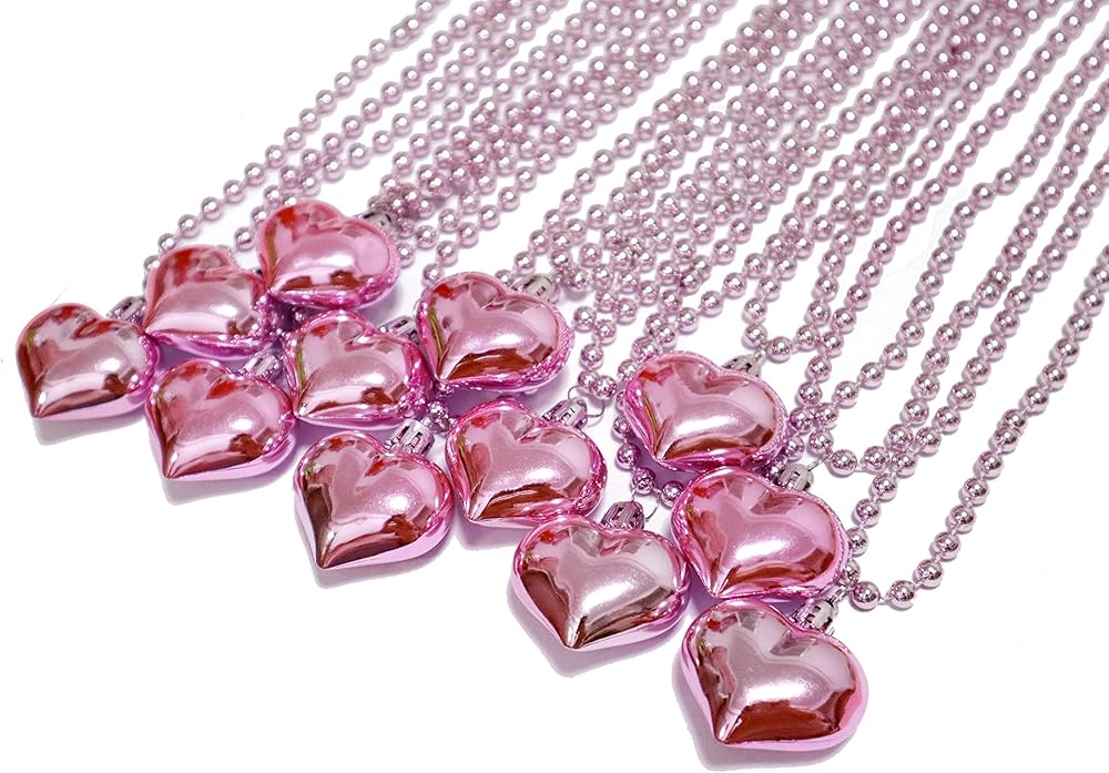 الكمية: سوف تحصل على 12 قطعة من قلادات الخرز ذات القلادة على شكل قلب وردي