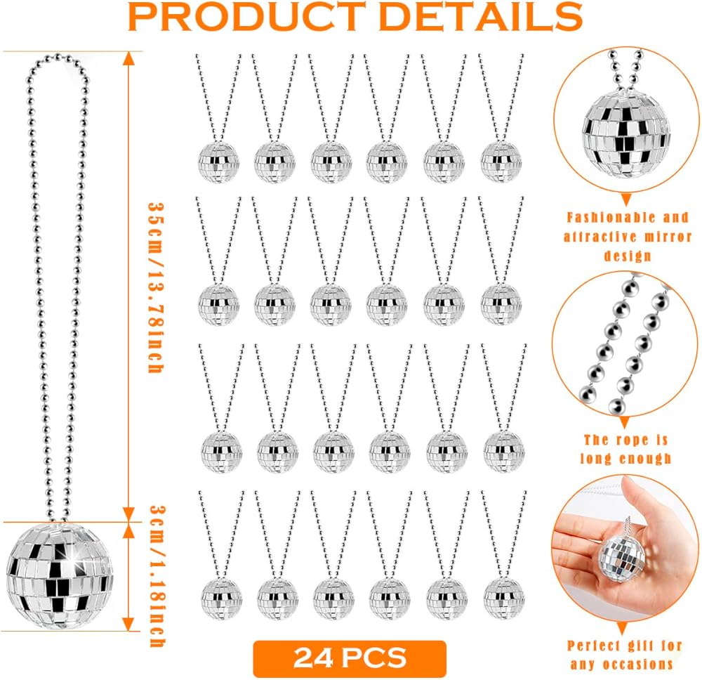 【24 قطعة من قلادات ديسكو المرآة】سوف تحصل على 24 قطعة من قلادات كرة الديسكو المرآة - 1.18 بوصة، وهي كافية لتلبية احتياجاتك. يمكنك مشاركة قلادات حفلات كرة الديسكو هذه مع عائلتك وأصدقائك. سواء كانت حفلة ذات طابع خاص أو حفلة عيد الميلاد، يمكنك تحويل الزي البسيط إلى زي جذاب مع هذه القلادة