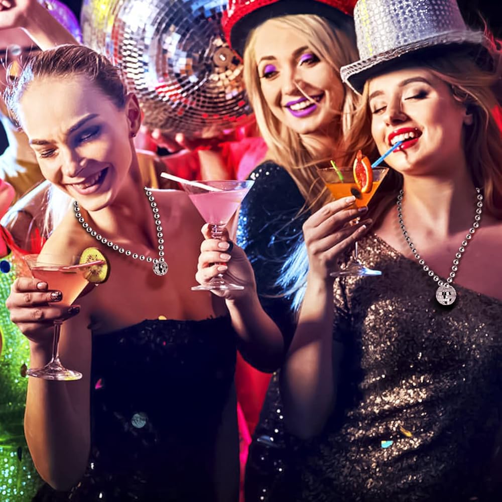 【قلادات كرة ديسكو متلألئة】تحتوي على كل قوة ديكور الديسكو في السبعينيات في كرة مرآة صغيرة تتلألأ ببراعة أينما ذهبت؛ ستصبح محط أنظار الحفل عندما تضع زينة كرة الديسكو المرآة حول رقبتك، حيث تعكس القطعة المركزية المزخرفة الضوء بشكل جميل لتتيح لك التميز