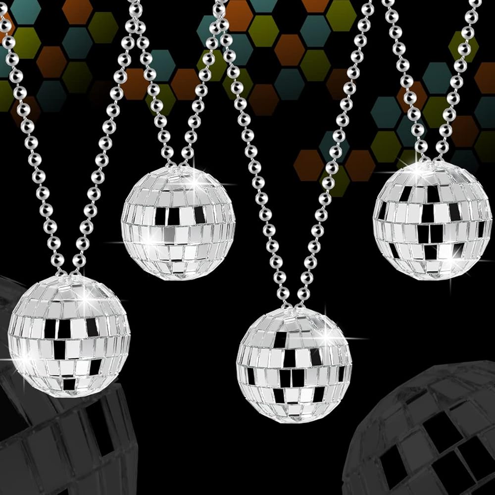 مرآة ديسكو الكرة القلائد، 70s ديسكو حزب القلائد البسيطة ديسكو الكرة القلائد الفضة ديسكو القلائد 1970s مجوهرات ديسكو حزب صالح الديكور زي الملحقات لوازم الرقص