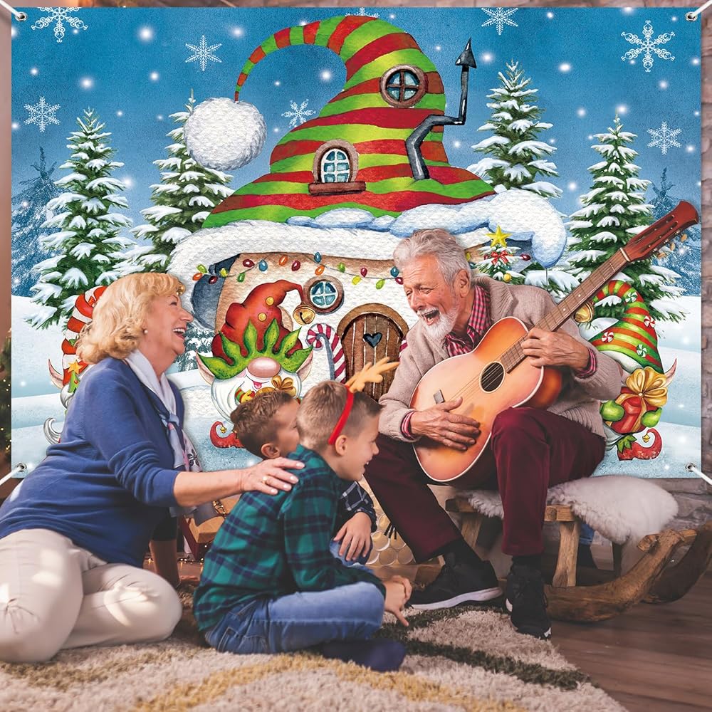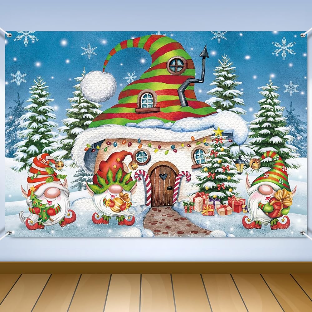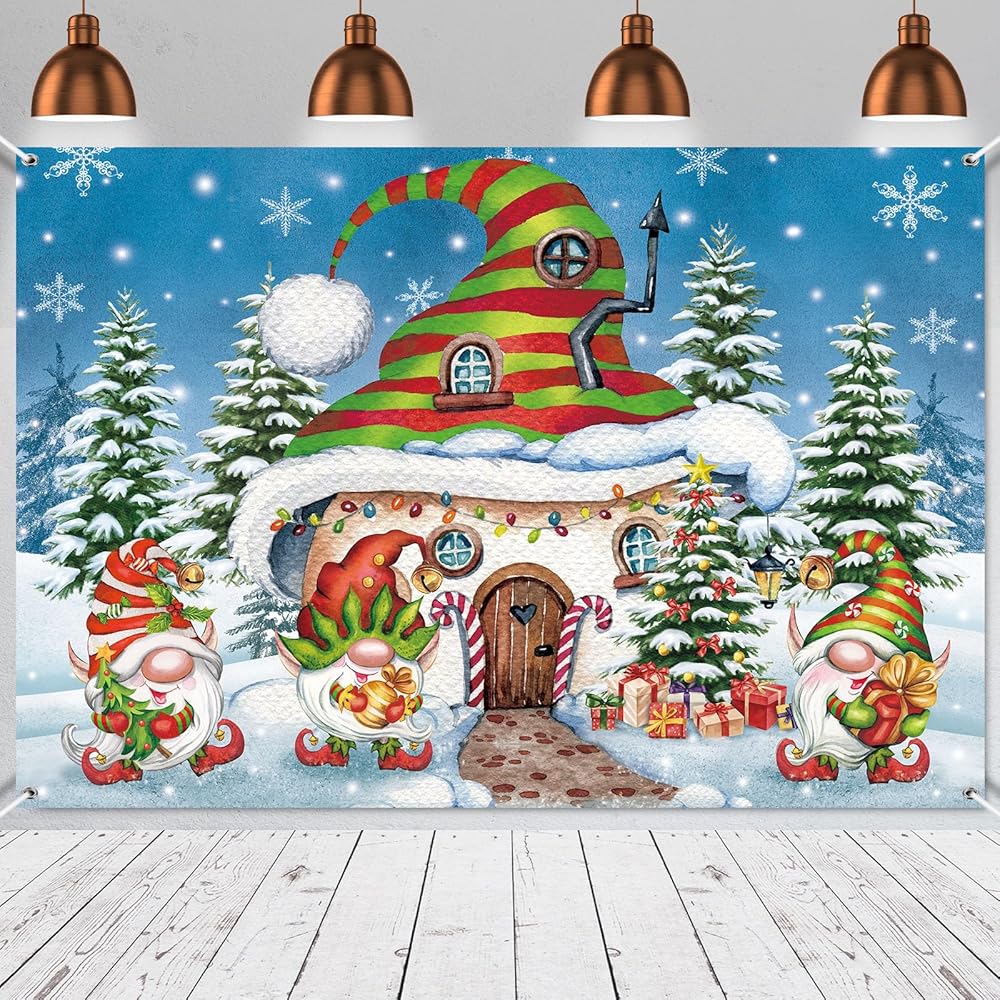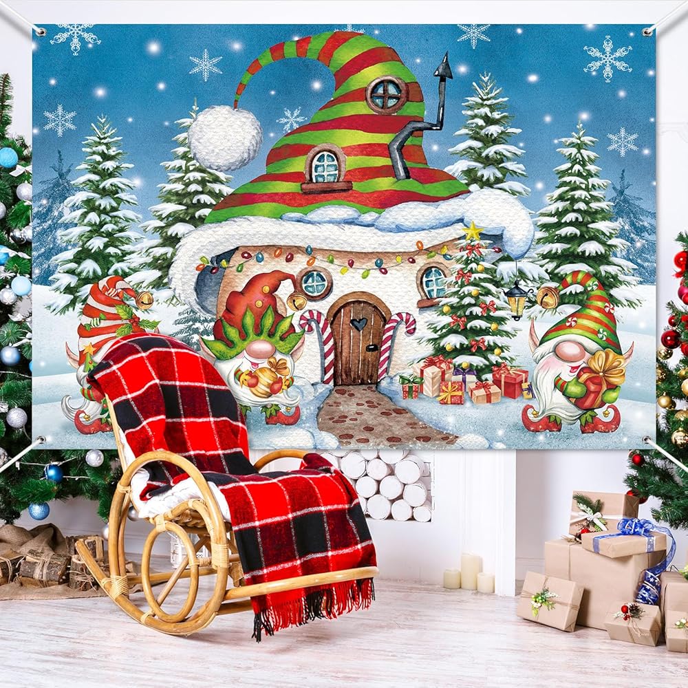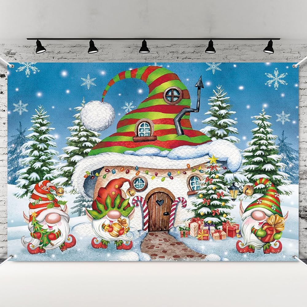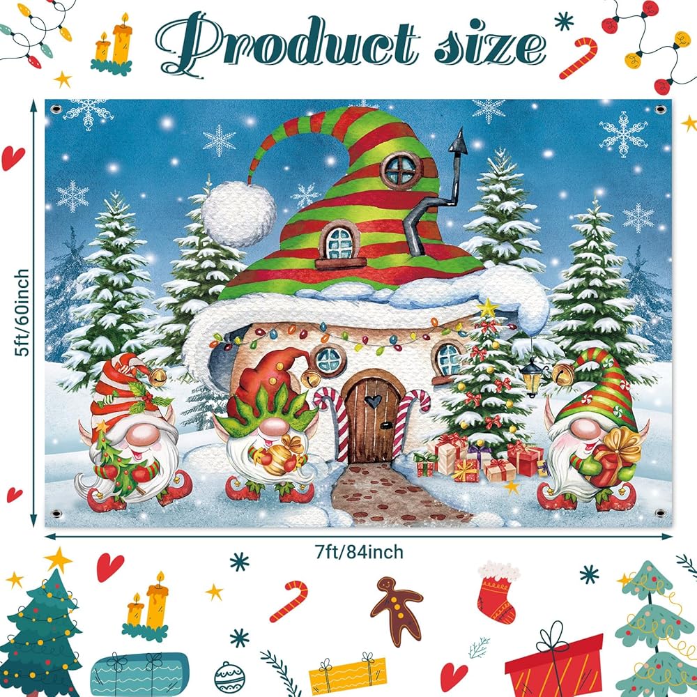 FuWeave 7 × 5 قدم عيد الميلاد جنوم خلفية زينة الحفلات عيد الميلاد باب المرآب راية قرية الثلج الصنوبر جدار صور الدعائم خلفية للخارجية في الهواء الطلق داخلي عطلة الشتاء لوازم الحفلات