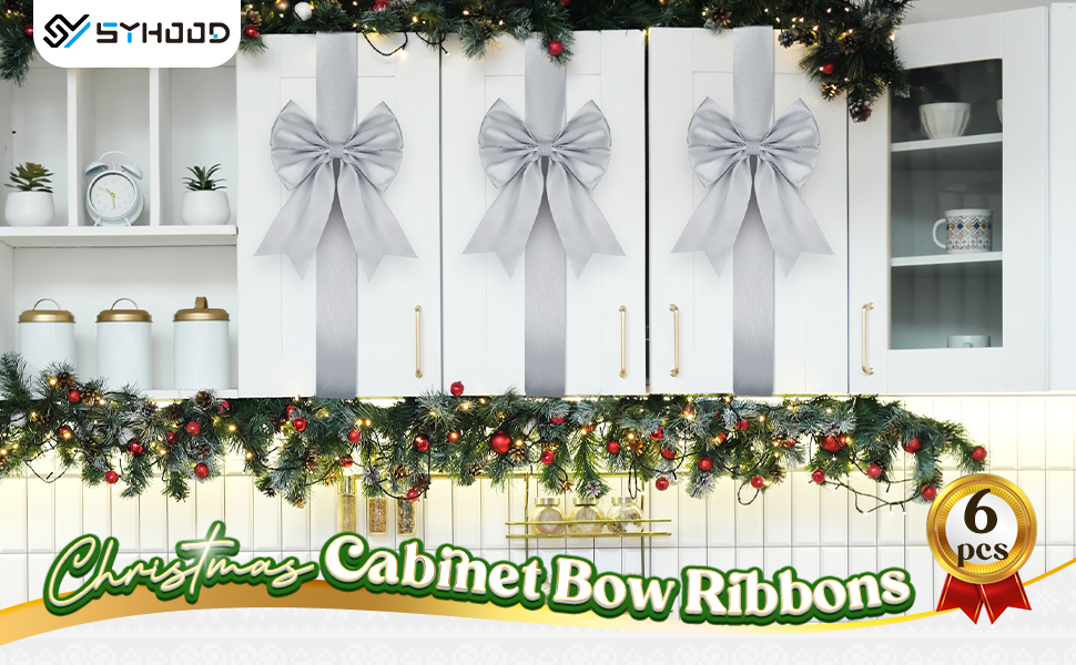 سيهود عيد الميلاد كابينة الفيونكات الكبيرة شريط الديكور القوس الاحتفالي شريط الفيونكات خزائن المطبخ ديكور غرفة الأثاث (الذهب ، 6 قطع)