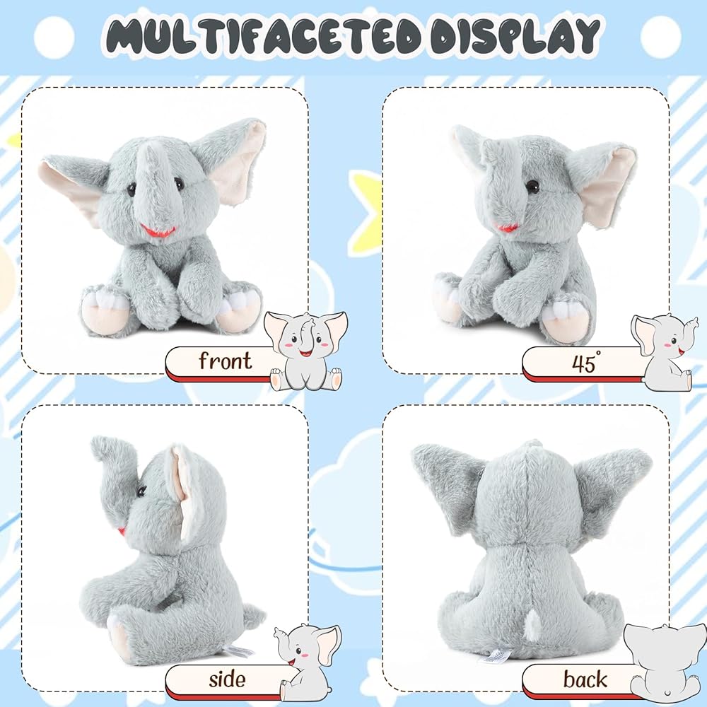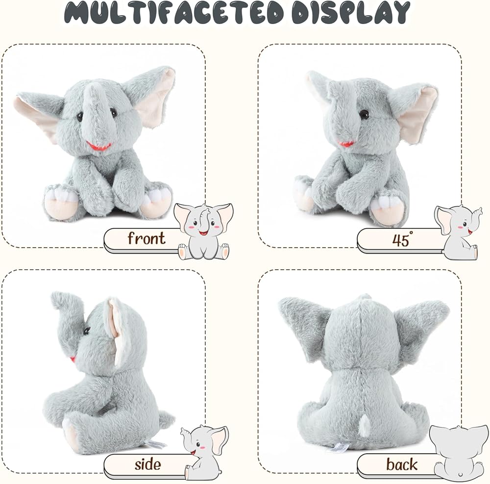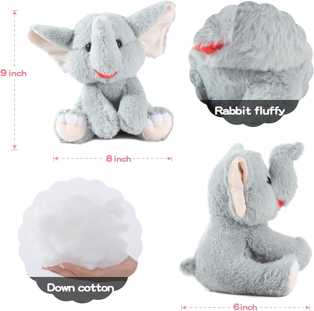 【تصميم الفيلة】: نموذج ألعاب الفيل المحشو باللون الرمادي: 8 × 6 × 9 بوصات، الأنف الطويل يحظى بشعبية كبيرة لدى الأطفال الصديقات!