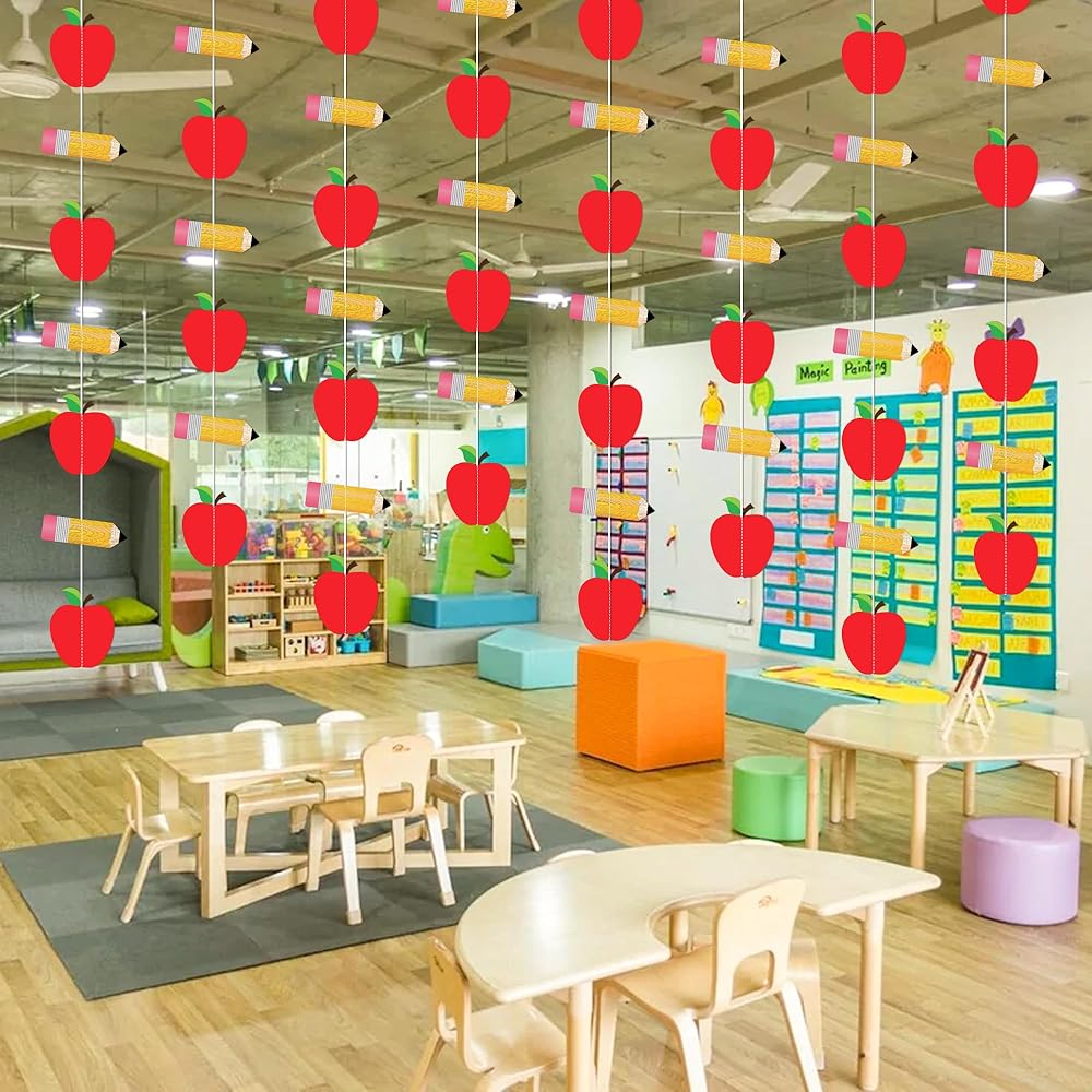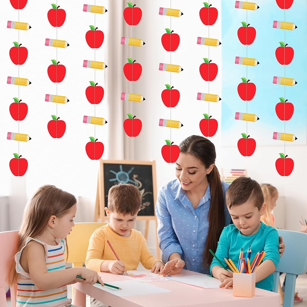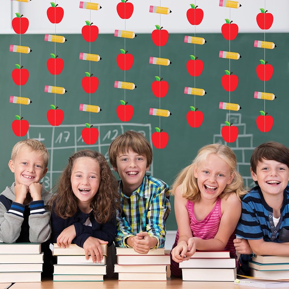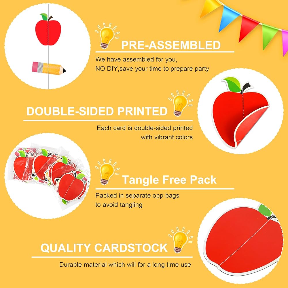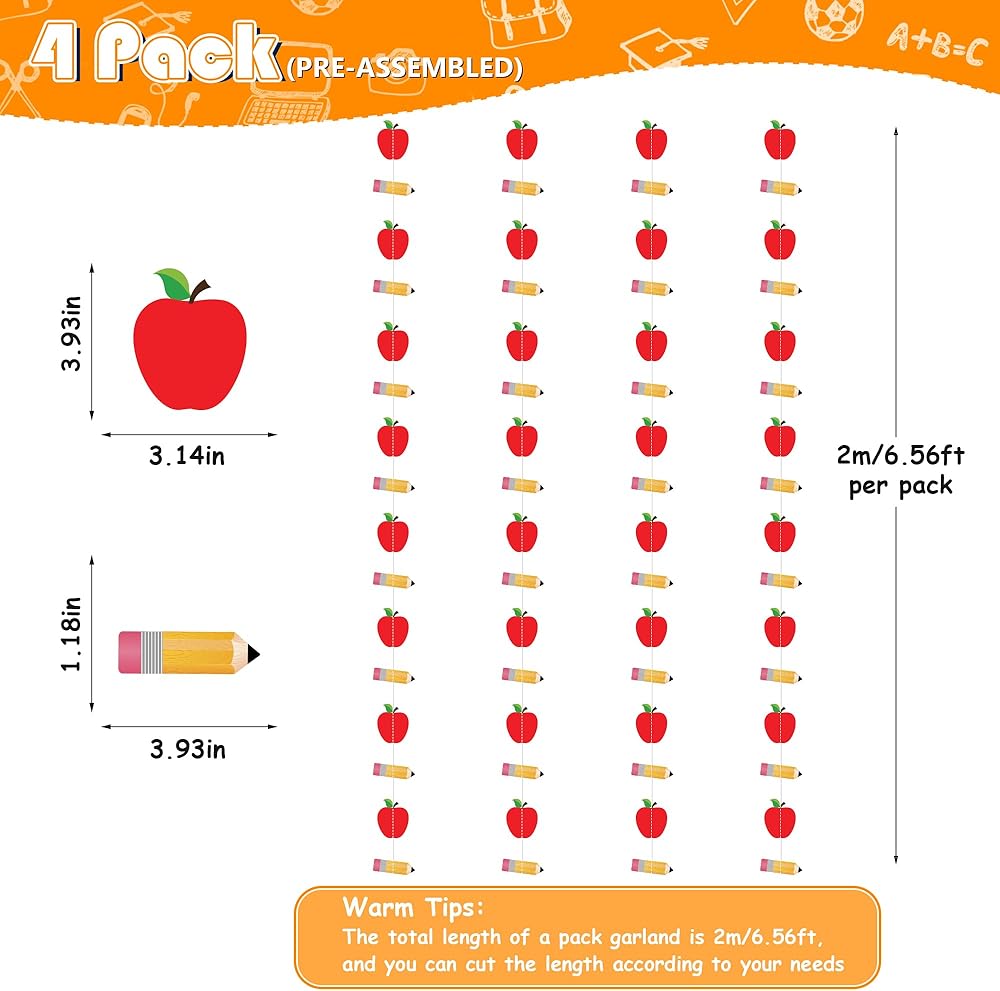 محتويات العبوة: سوف تحصل على 4 قطع من إكليل معلق للعودة إلى المدرسة. الطول الإجمالي لإكليل العبوة هو 2 متر/6.56 قدم، ويمكنك قص الطول وفقًا لاحتياجاتك. مع نمط تفاحة وقلم رصاص لطيف، إضافة مثالية لتزيين سقف الفصل الدراسي عندما يأتي اليوم الأول من المدرسة.