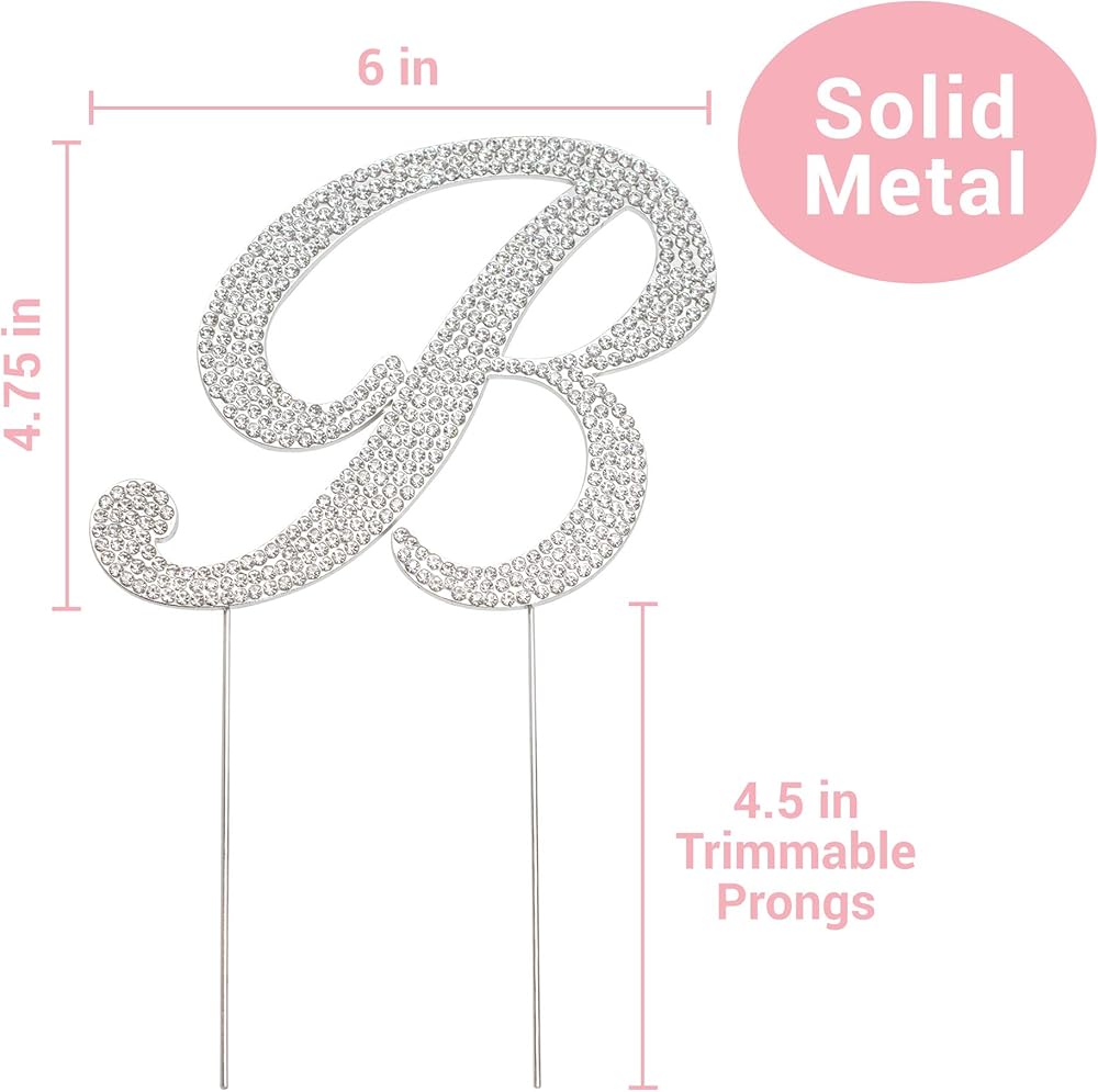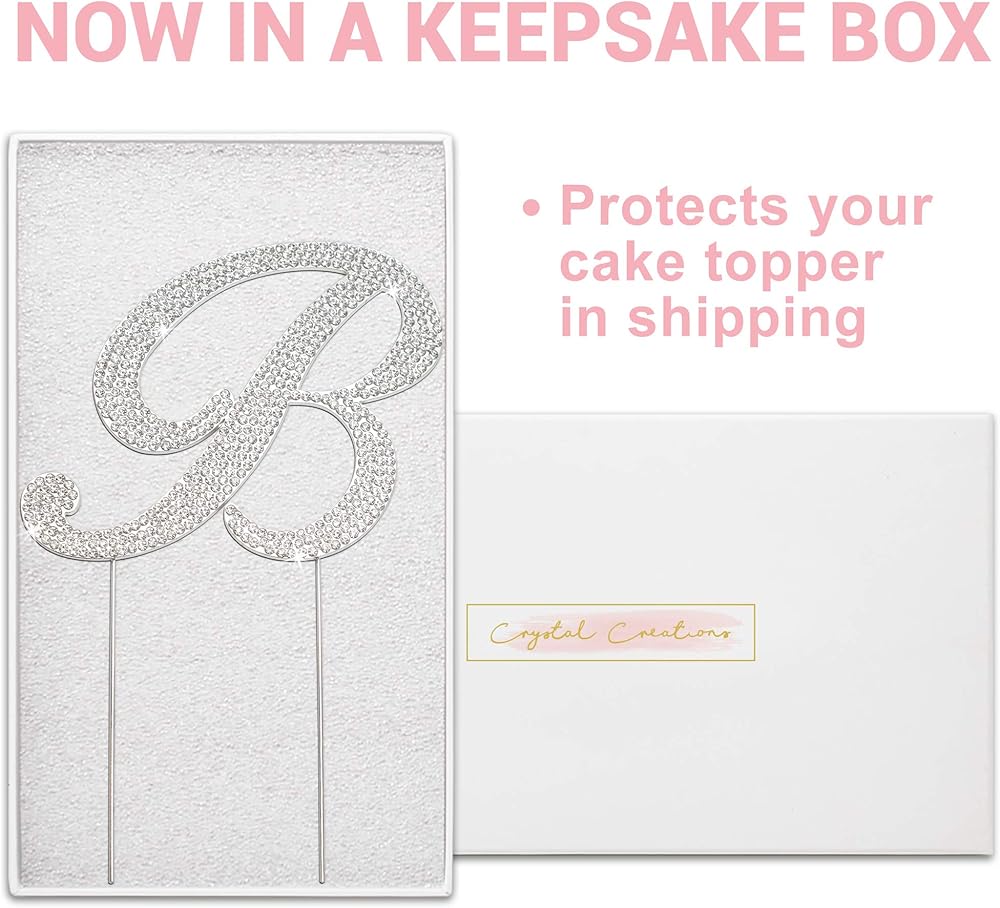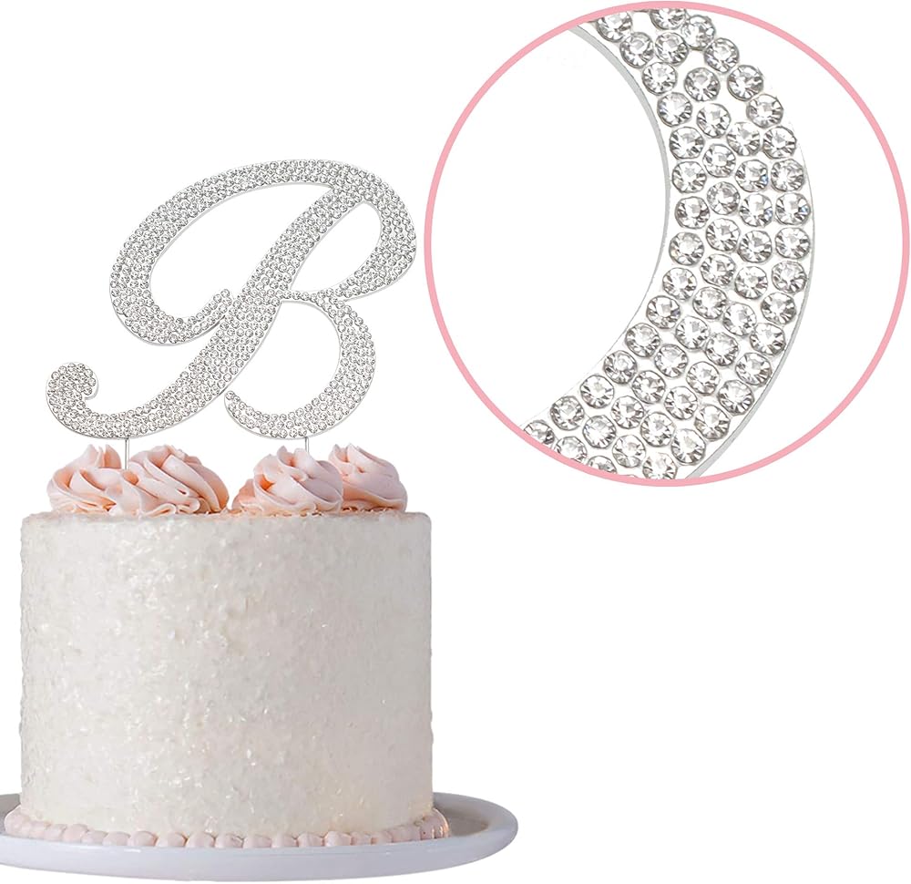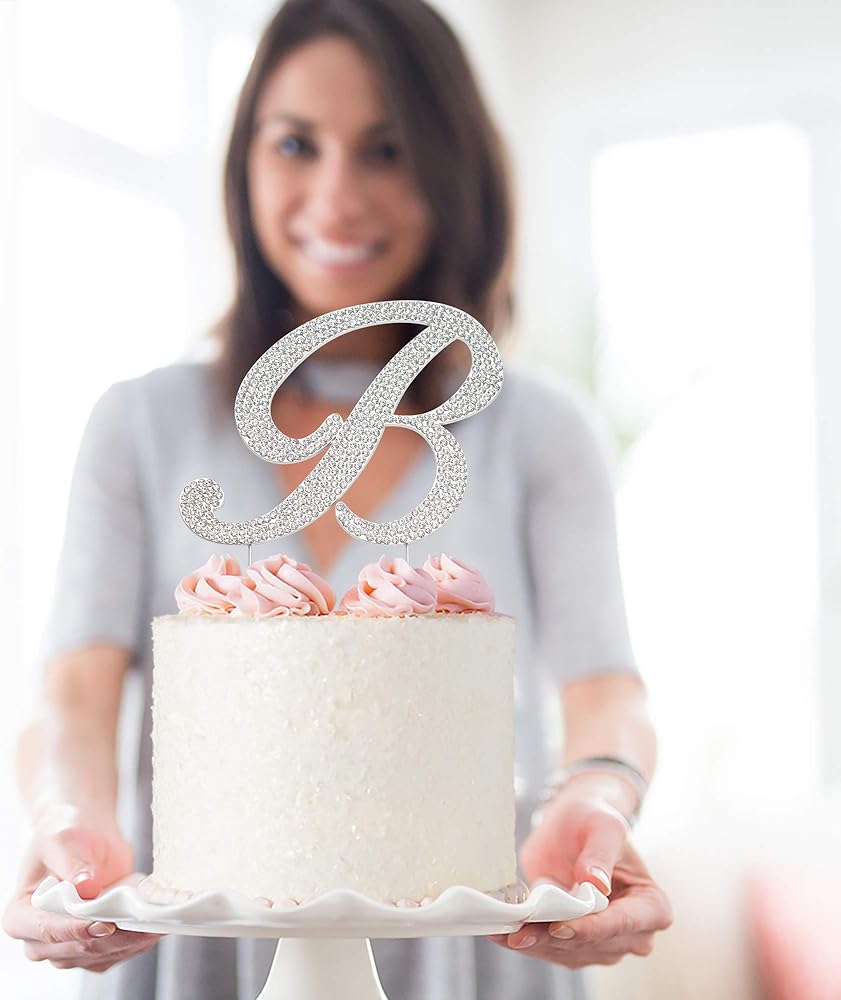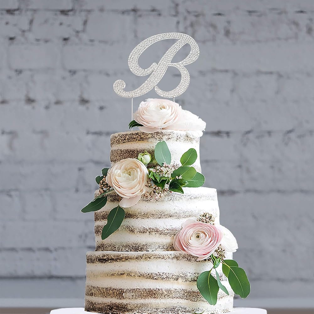 زينة علوية للكعك على شكل حرف B - معدن فضي فاخر - حرف B منحني حرف B لحفلات الزفاف أو الذكرى السنوية لتزيين الحرف الأول من حجر الراين اللامع يجعلها قطعة مركزية رائعة - محمية الآن في صندوق