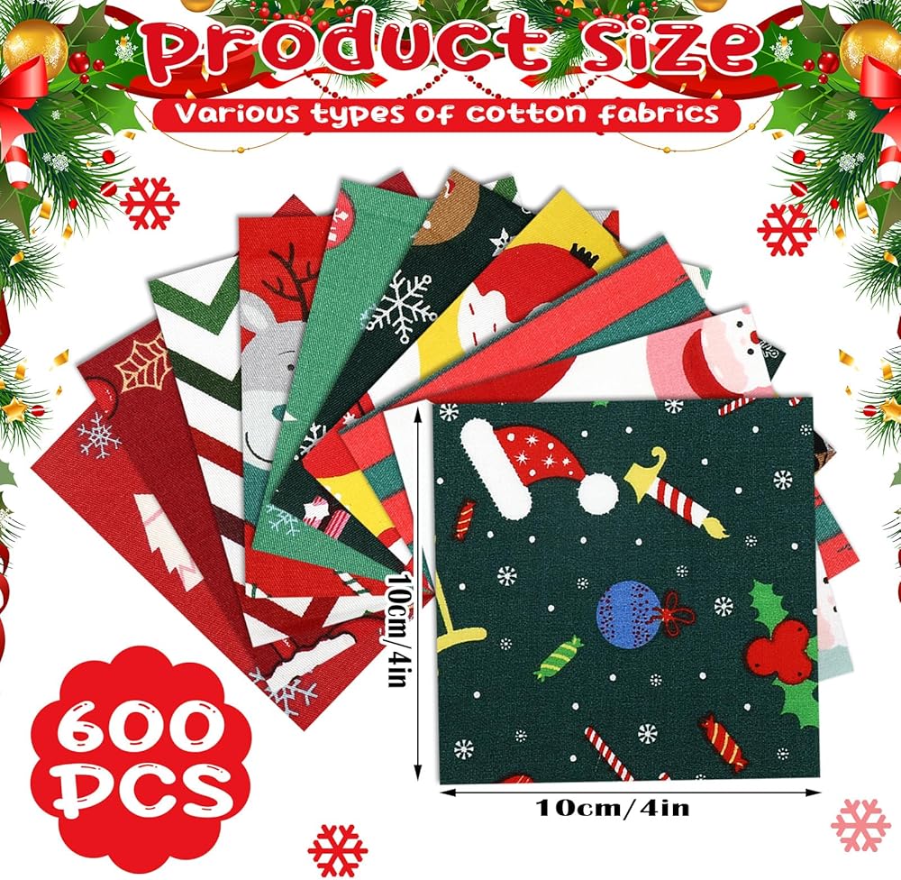 Sufficient Quantities: each package comes with 600 Christmas fabric squares, each measuring approximately 4 x 4 inches/ 10 x 10 cm; This size is just right for an array of DIY projects; The generous size of the squares ensures versatility and caters to both small and large crafting designs