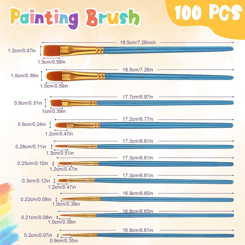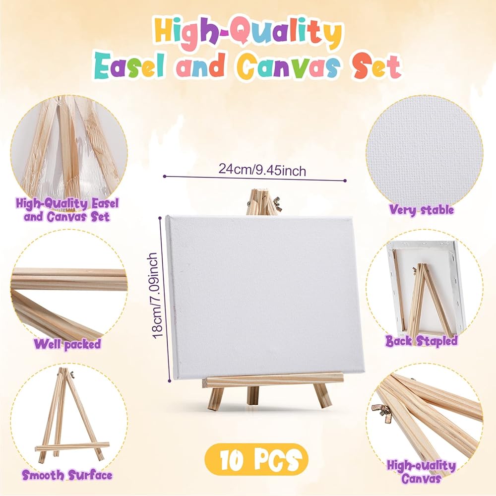 Ideal Painting Sets: you will receive a total of 130 pieces of items, includes 100 pieces of painting brushes (10 pieces a set, 10 sets), 10 wooden easels, 10 palettes and 10 canvases from the canvas painting kit, enough to meet your uses and replacement needs, and you can also share them with others