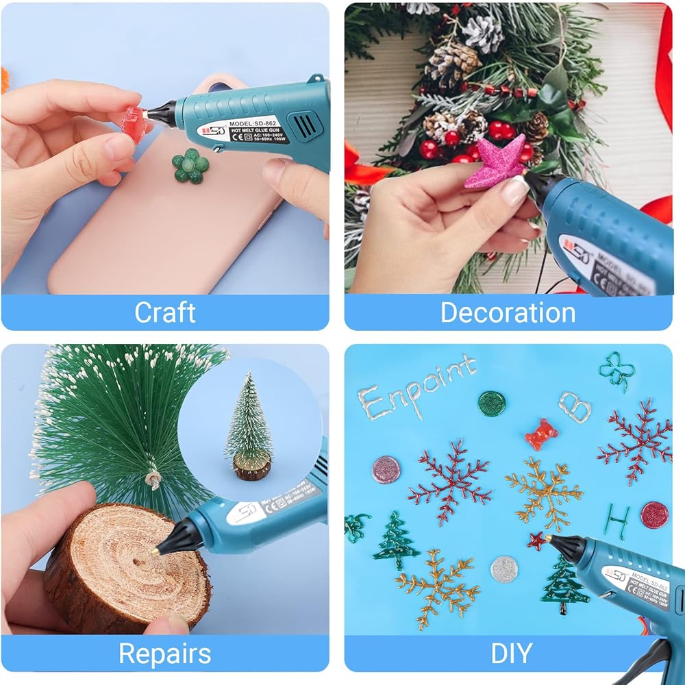 Ice blue glue sticks and Green sticks:Suitable for creative plants, handmade flowers, green plant decoration, Christmas tree decoration, etc