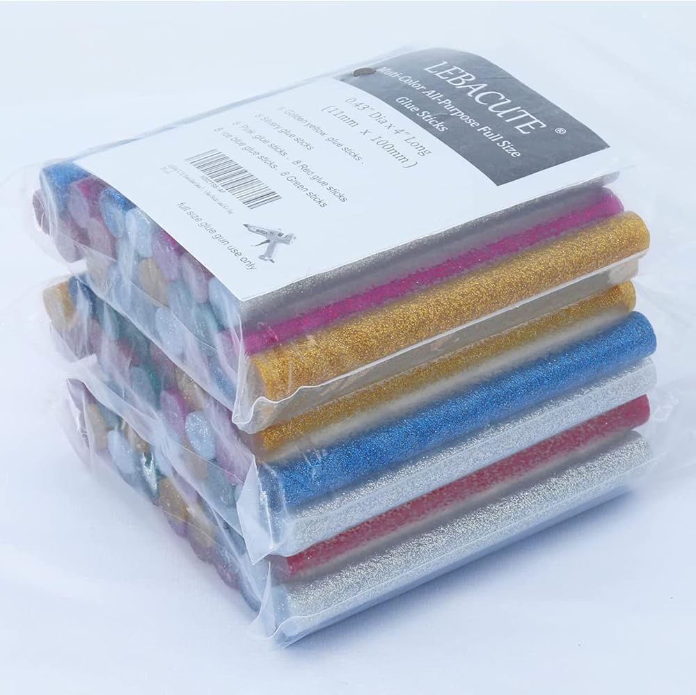 LEBACUTE اللون العصي الغراء الساخن لمسدس الغراء الحجم الكامل متعددة الألوان العصي الغراء للحرف اليدوية، 0.43 "قطر × 4" طويلة 6 ألوان، 48 جهاز كمبيوتر شخصى