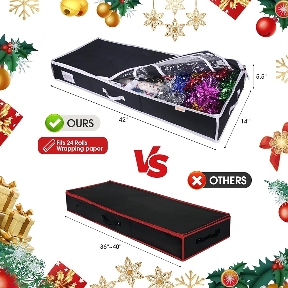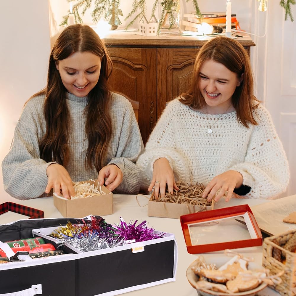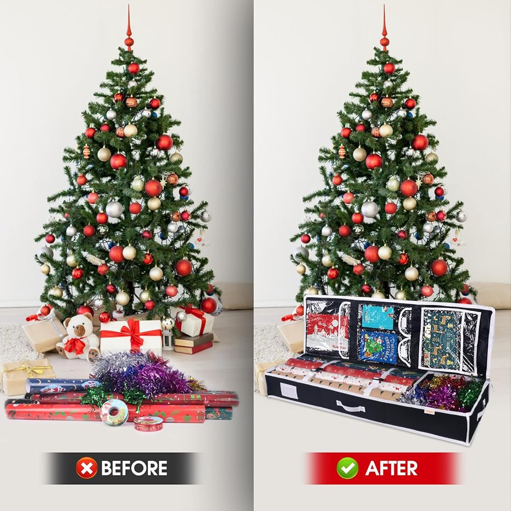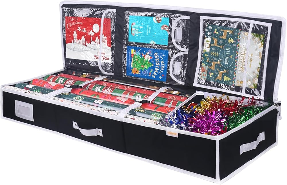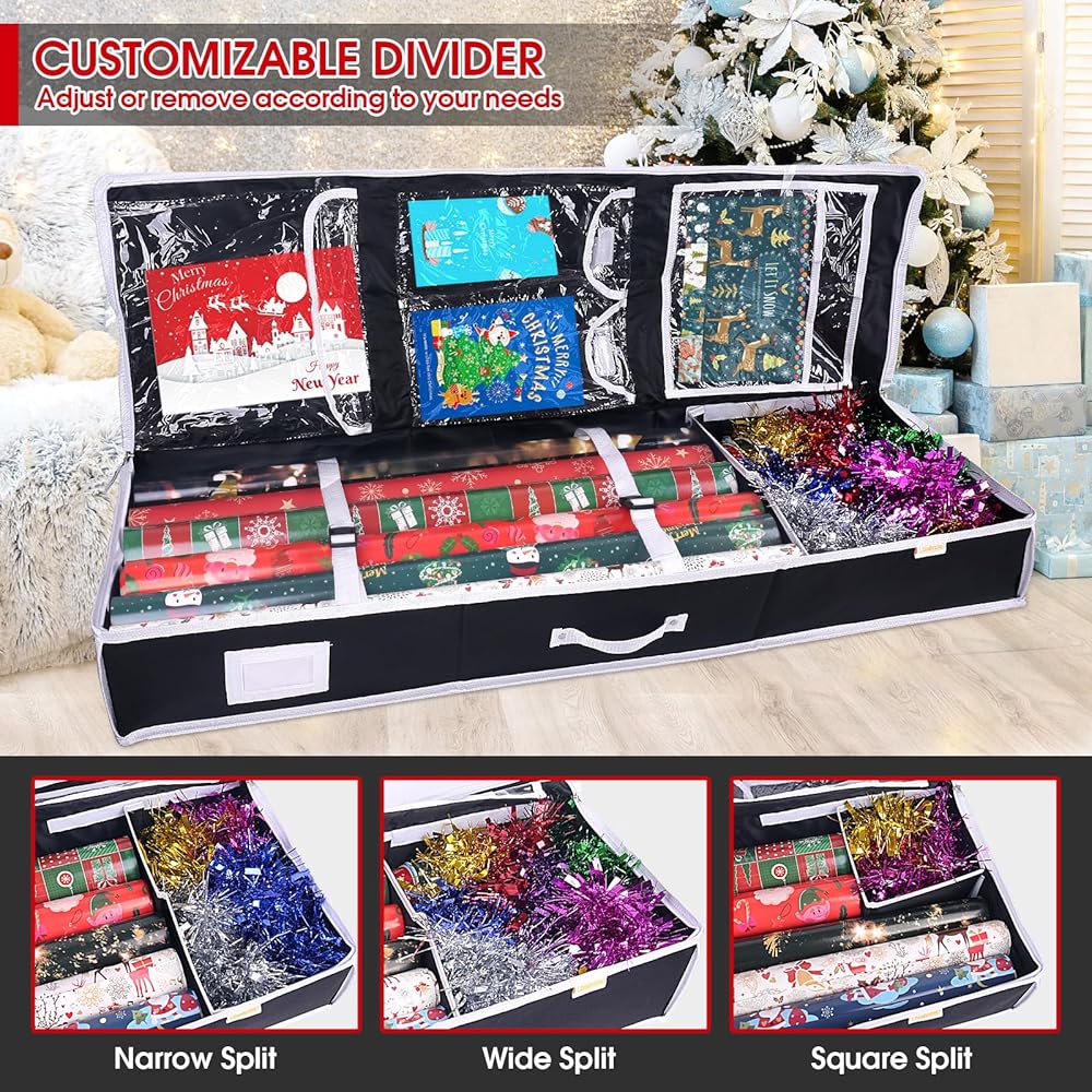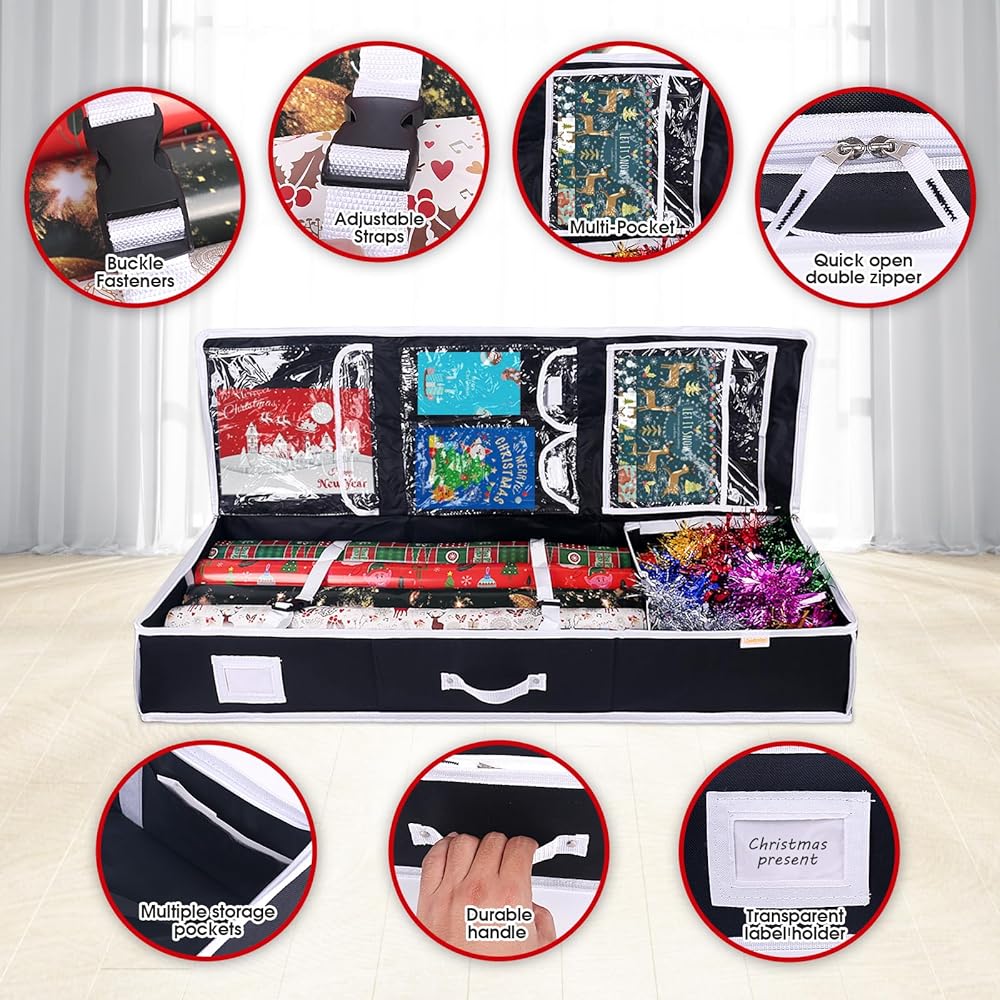 • - لا تدع ورق التغليف يشغل مساحة كبيرة في منزلك بعد الآن. قم بالتنظيم باستخدام حاويات تخزين ورق التغليف الخاصة بنا واجعل تقديم الهدايا أسهل من أي وقت مضى.