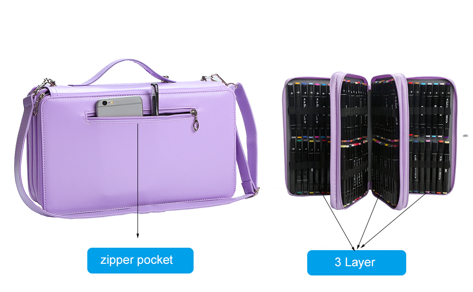 يناسب علامات التحديد وأحمر الشفاه: يمكنك استخدام هذا لأقلام التحديد المكونة من 120 قطعة، إلى جانب ذلك، يمكنك تنظيم أحمر الشفاه الخاص بك إذا كنت موزعًا لأحمر الشفاه/ليبسينس. الجيوب الموجودة على الجوانب الخلفية ستخزن أيضًا العناصر الصغيرة مثل بطاقات العمل والهاتف المحمول والأقلام.