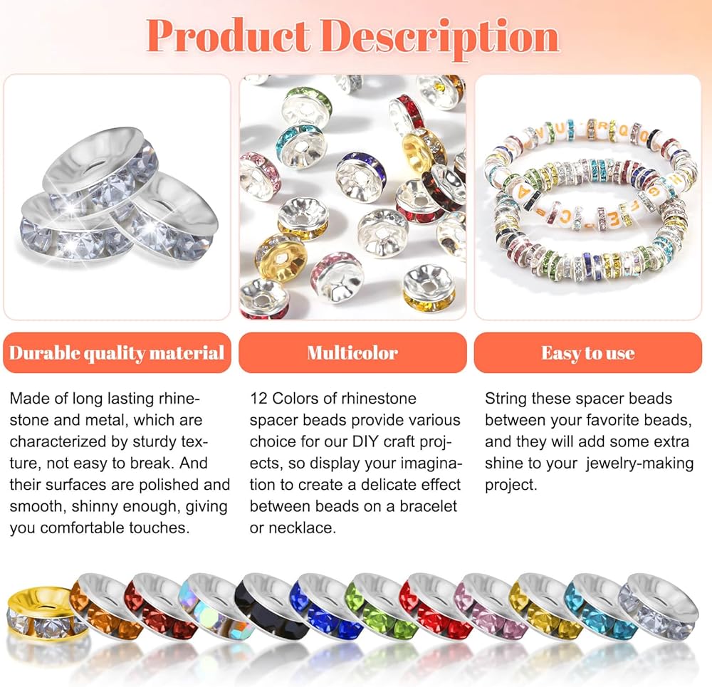 Shiny Color: These bead spacers for jewelry making are designed with several mini rhinestone, bright, multicolor and shiny in appearance, which can create a more glamorous effect effect between bracelet or necklace beads