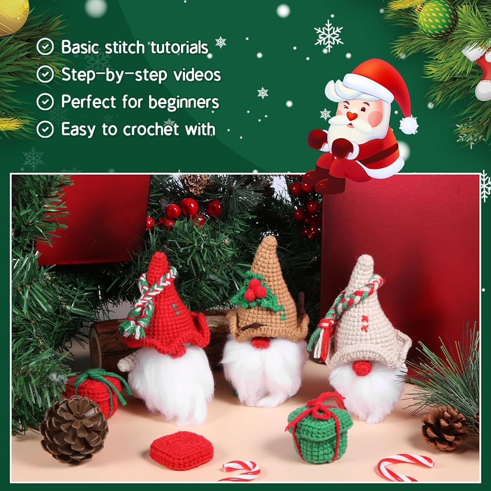 مجموعة الكروشيه للمبتدئين، مجموعة أدوات الكروشيه للمبتدئين في عيد الميلاد للبالغين والأطفال مع دروس فيديو خطوة بخطوة، مجموعة مكونة من 3 قطع من أدوات الكروشيه لعيد الميلاد لتزيين عيد الميلاد، لوازم الأعمال اليدوية ذاتية الصنع
