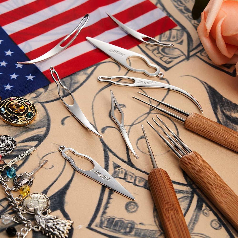 ❄ أدوات أكثر أقل متاعب】 8 قطع أداة متشابكة لأدوات التركيب و3 قطع من إبرة كروشيه دريدلوك الخشبية لبدء تركيباتك بسهولة! يمكن وضع إكسسوارات دريدلوك هذه على الأربطة أو S أو M أو L أو لا تقلق أبدًا بشأن العثور على خطاطيف الكروشيه المناسبة للشعر!
