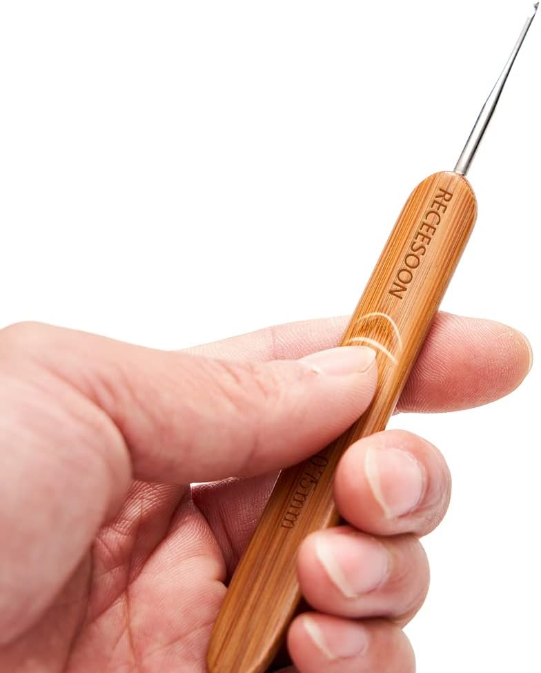 【مادة موثوقة】 إبرة الكروشيه الخاصة بنا مصنوعة من الفولاذ المقاوم للصدأ والخيزران عالي الجودة، فائقة المتانة والنعومة. تتميز خطافات الكروشيه للشعر بالنعومة عند لمسها وسهولة في الإمساك بها