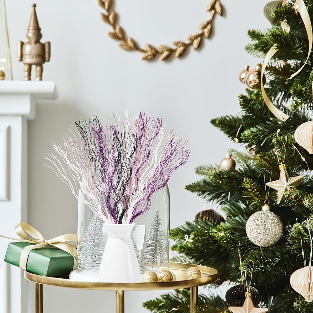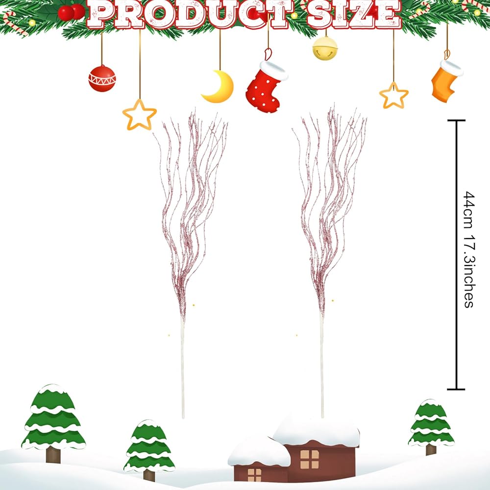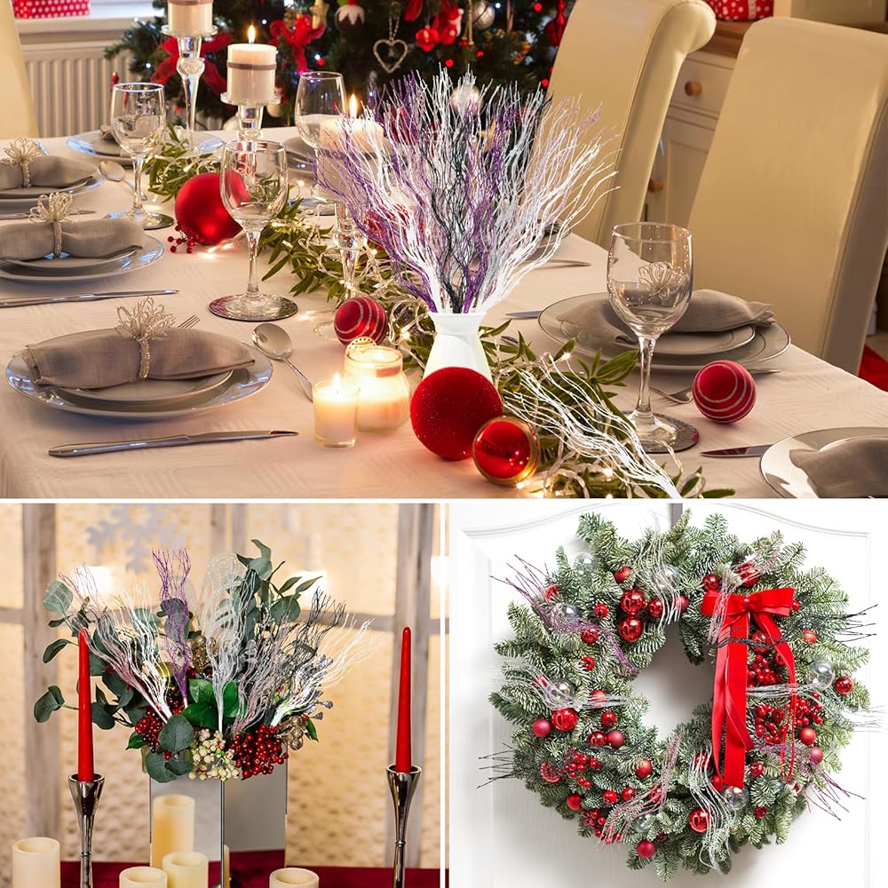 【أعواد لامعة صناعية】تم تزيين الأعواد اللامعة الصناعية ببريق لامع. يمكنك تزيينها على شجرة عيد الميلاد أو المزهرية الخاصة بك، ويمكن أن تعمل بشكل جيد مع أي ديكور وأسلوب عيد الميلاد.