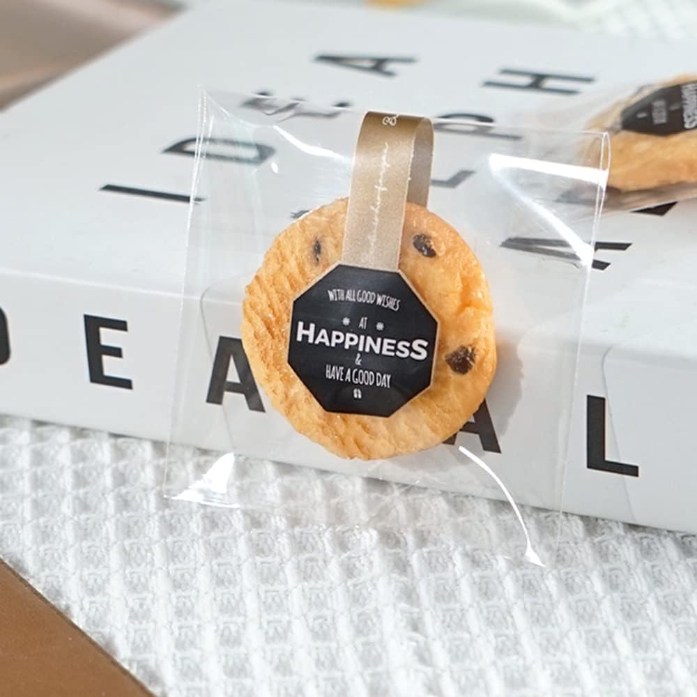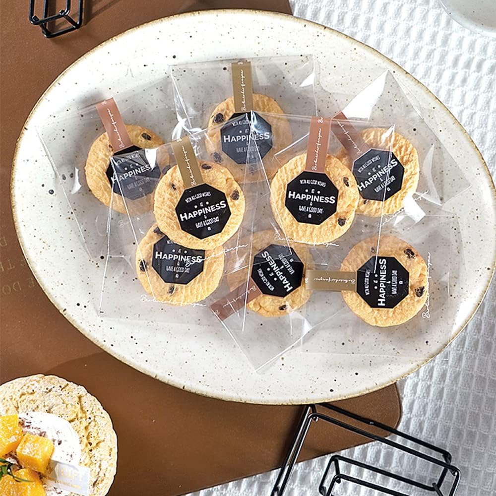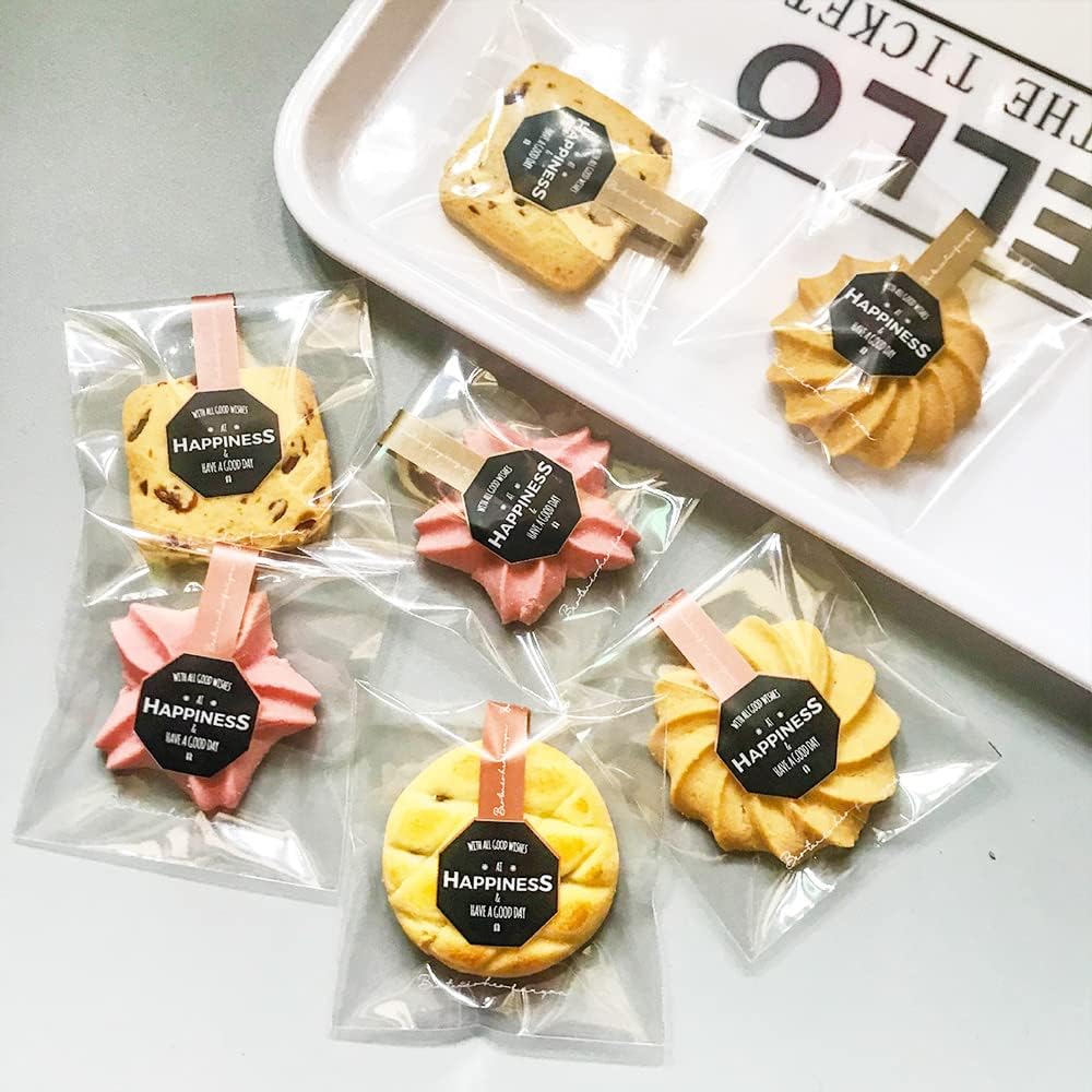 أكياس ملفات تعريف الارتباط ذاتية اللصق من السيلوفان، 200 قطعة مقاس 2.75x2.75 في أكياس ملفات تعريف الارتباط للتغليف مع طباعة "HAPPINESS" لحفلات تقديم هدايا حلوى المخبوزات (QS62)
