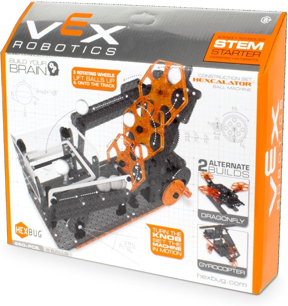 تؤمن هيكس بج باستخدام متعة الألعاب الروبوتية لتعليم الأطفال مبادئ العلوم والتكنولوجيا والهندسة والرياضيات المهمة من خلال التعلم اليدوي. تتميز هيككالاتور الروبوتية من فيكس ببنيتين بديلتين لمزيد من المرح الآلي. جميع قطع البناء من هيكسكالاتور متوافقة مع قطع VEX IQ التعليمية لإنشاء روبوت VEX المخصص الخاص بك واستكشاف إمكانيات غير محدودة. اجمع وتوصيل جميع آلات الكرة الروبوتية من فيكس، أو امنح آلة الكرة الروبوتية من فيكس دفعة قوية مع مجموعة محرك الروبوتات فيكس (تباع بشكل منفصل).