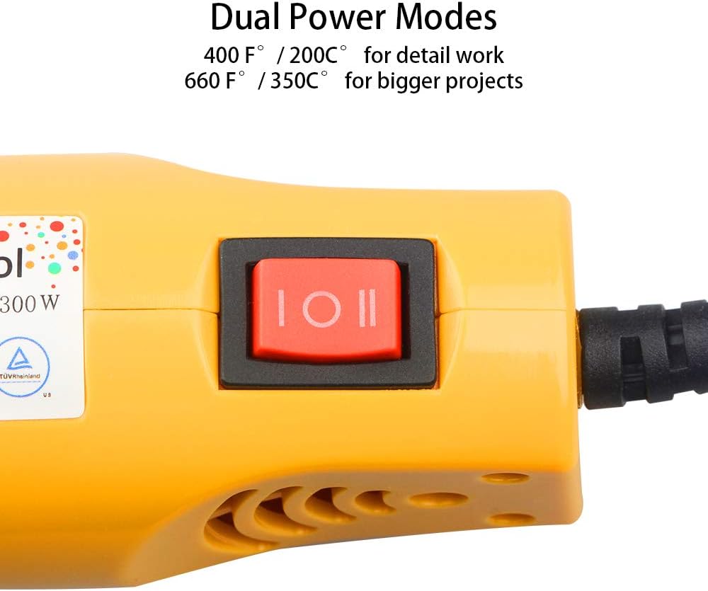 ✅ مسدس حراري صغير متعدد الوظائف مزود بإعدادين للسرعة/درجة الحرارة ويتميز بتشغيل هادئ. أوضاع طاقة مزدوجة 350 وات - 660 درجة فهرنهايت/350 درجة مئوية (عالي)، 400 درجة فهرنهايت/200 درجة مئوية (منخفض).