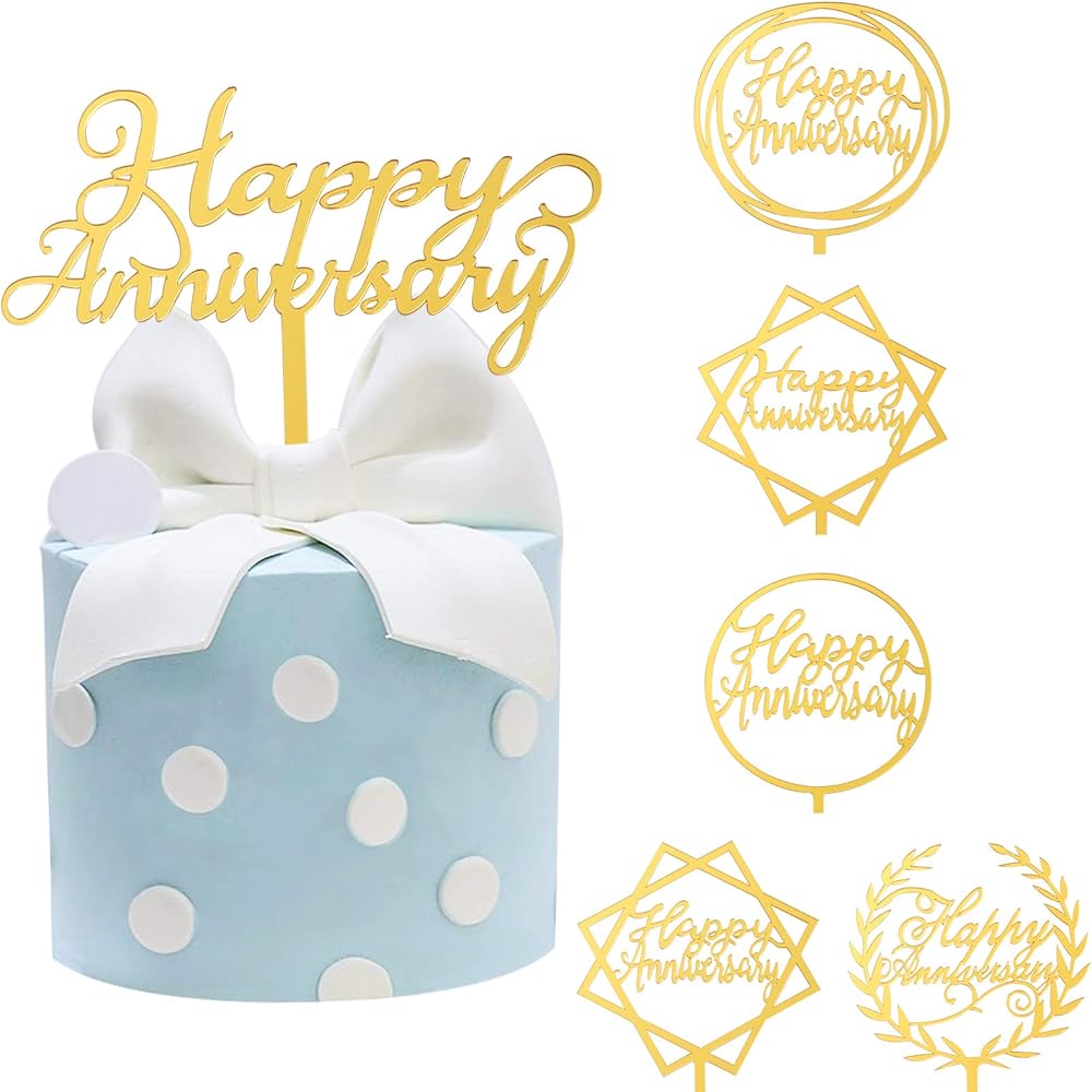 [ستحصل على] - 6 قطع زينة كعكة الذكرى السنوية السعيدة، لون ذهبي. مثالية للذكرى السنوية للزفاف، أو الذكرى السنوية للشركة، أو غيرها من ديكورات الحفلات ذات الطابع الخاص بحفلة