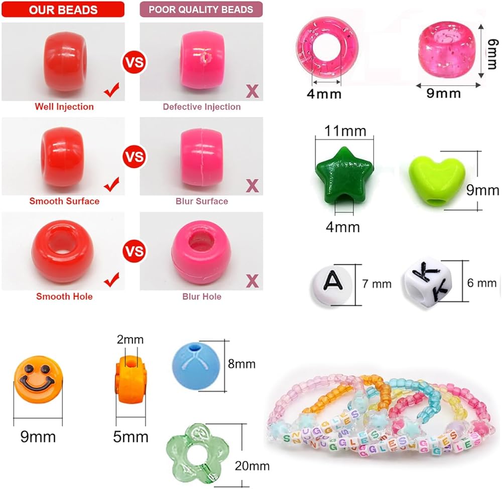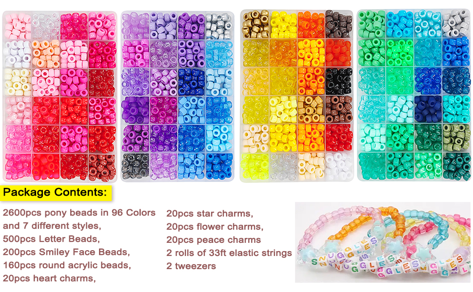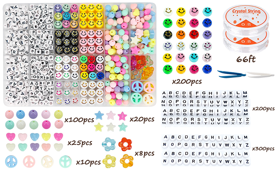 • مجموعات مثالية: تحتوي مجموعة خرز المهر الخاصة بنا على 2600 قطعة من خرز كاندي، و500 قطعة من خرز الحروف للأساور، و200 قطعة من خرز الوجه المبتسم في 8 ألوان مختلفة، و240 قطعة من خرز الأكريليك والحلي، ولفتين من خيوط مرنة بطول 33 قدم، وملقيط. إنها خرز مثالي لسوار الصداقة، بكميات كافية لتلبية احتياجاتك اليدوية المختلفة.