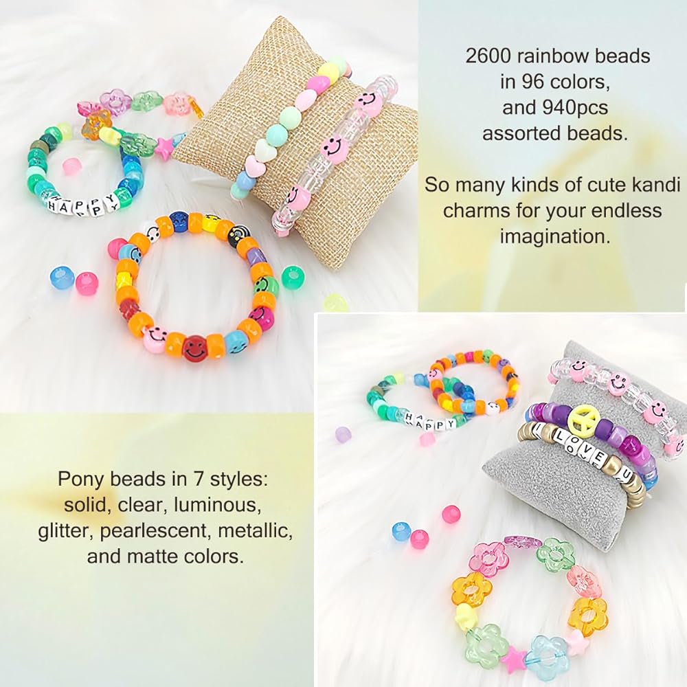 خرز بوني لصنع الاساور من مييم 3540 قطعة، 96 لون، 2600 قطعة خرز كاندي، 500 قطعة خرز حروف و200 قطعة خرز وجه مبتسم، خرز بلاستيكي لصنع المجوهرات، 5 صناديق مجموعة اساور كاندي للحرف اليدوية