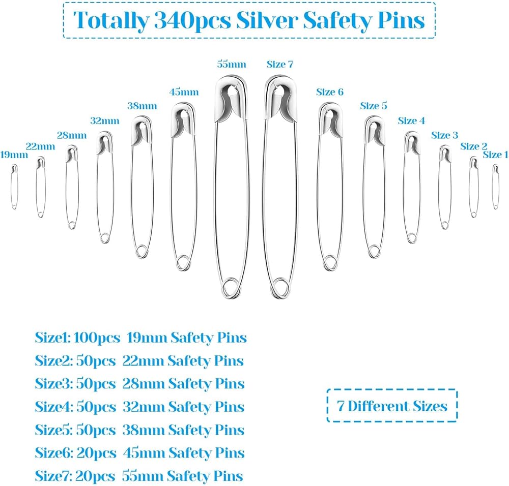 دبابيس الأمان بأحجام مختلفة يمكن أن تلبي احتياجاتك المختلفة في الصناعة اليدوية أو الخياطة. 340 قطعة من دبابيس الأمان من كريدوز بأحجام متنوعة مثالية لجميع المشروعات الحرفية: قم بتمرير الخرز المفضل لديك أو الزخرفة المتدلية لصنع دبابيس بروش مخصصة أو استخدم الدبابيس لحمل سترة منفوشة أو وشاح.