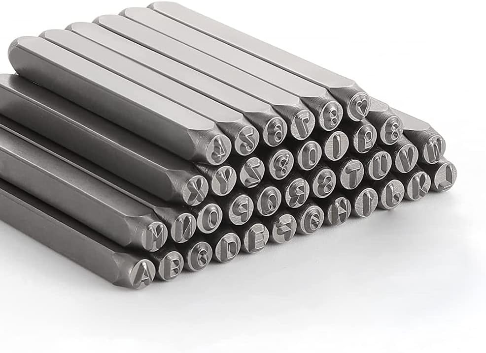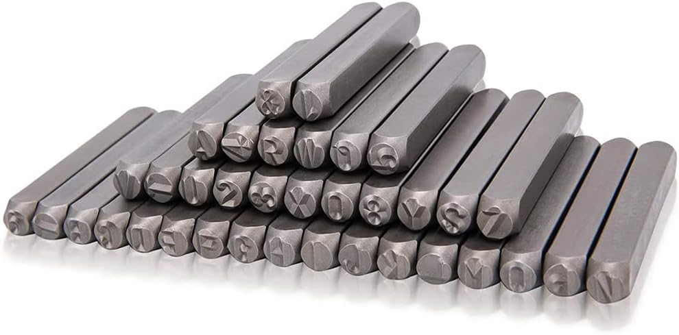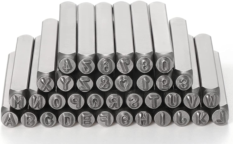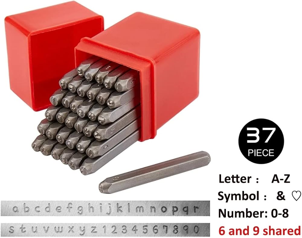 SKYZONAL Number and Letter Punch Set 37-Piece Steel Metal Stamping Tool Set (A-Z 0-9 & Heart Shape) for Jewelry Craft, Wood, Plastic, Leather Stamping 1/8" (3mm)