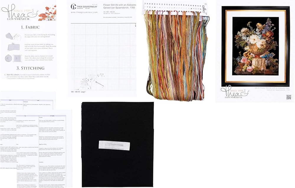 تحتوي العبوة على جميع اللوازم اللازمة (عالية الجودة جدًا) لبدء التطريز على الفور: نسيج أيدا الأسود، خيط DMC تم فرزه مسبقًا، جون جيمس إبرة، مخطط سهل الاتباع والتعليمات بلغات متعددة بما في ذلك الإنجليزية