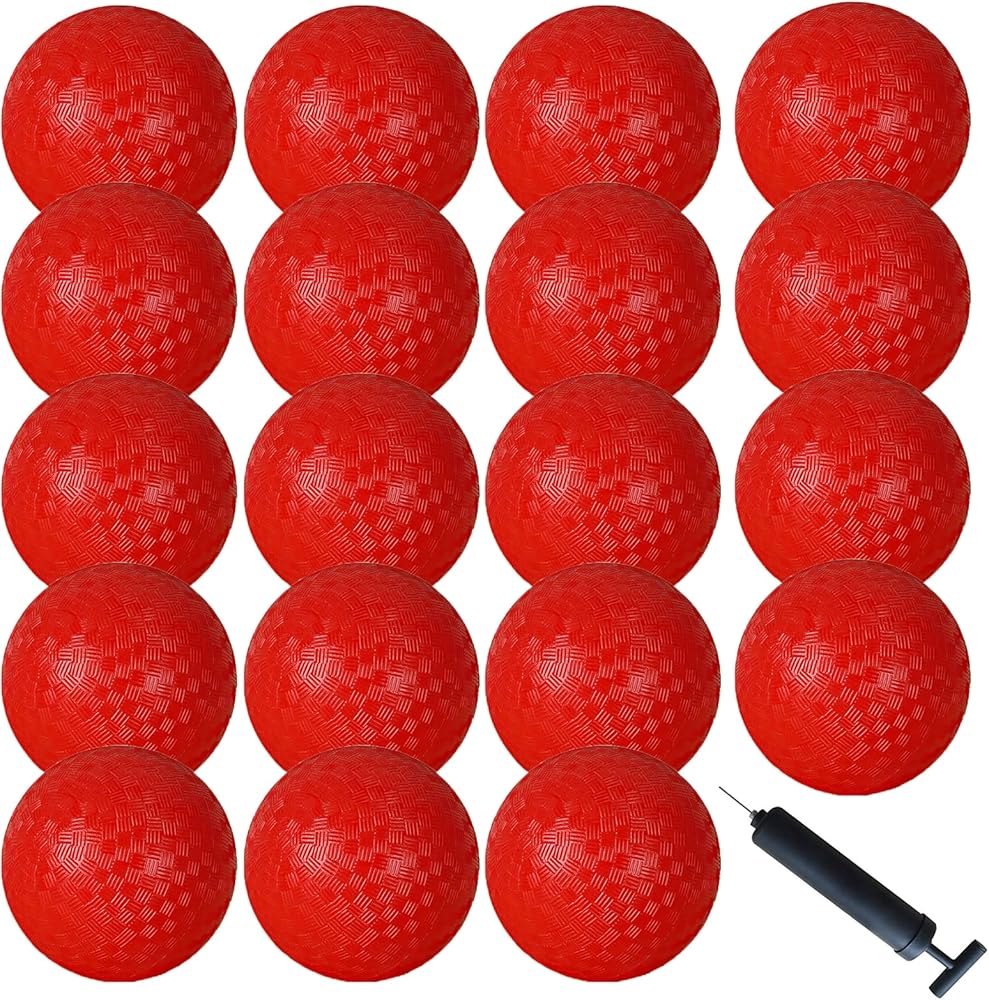 تيرجي 20 قطعة من كرات الملعب 9 انش مطاطية حمراء قابلة للنفخ كرات دودجبول مع مضخة هواء للاطفال والكبار وكرة دودج وكرة اليد والمخيمات والمدارس