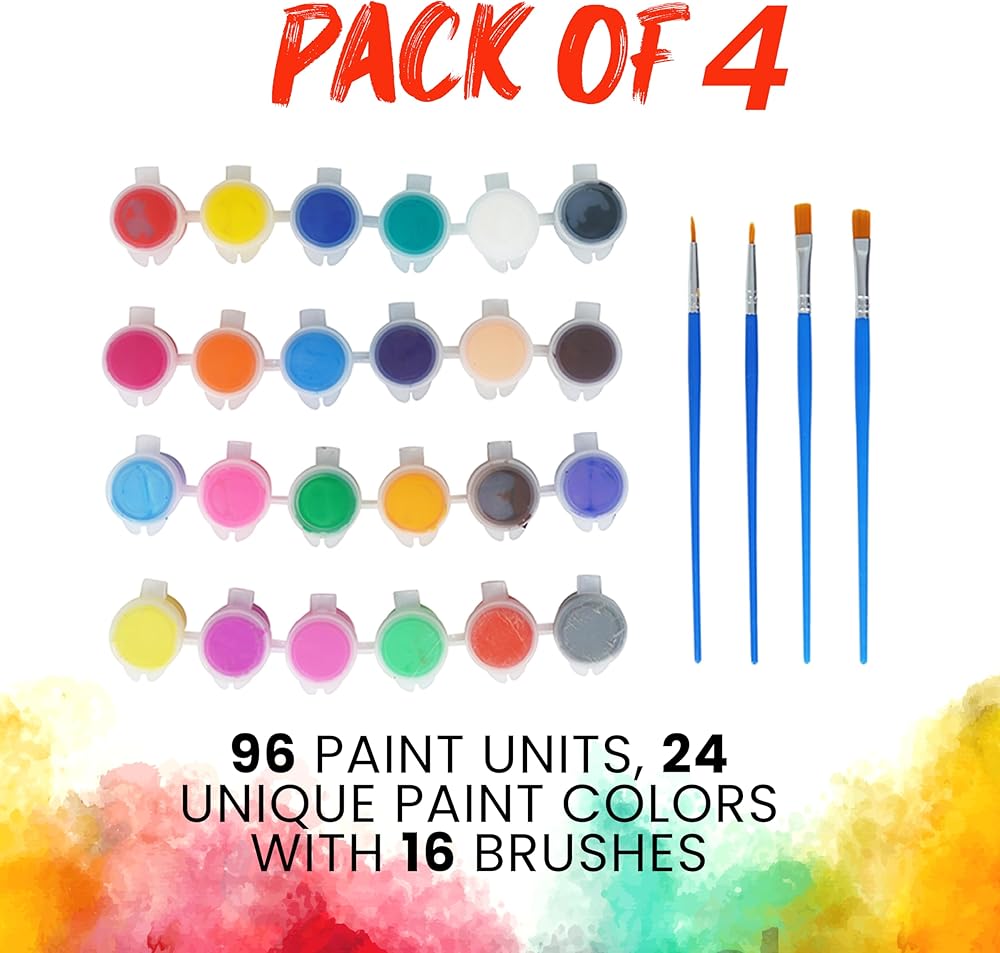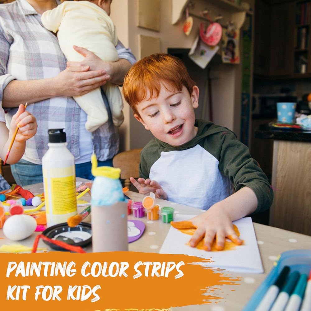 Dive into an expansive artistic journey with our mini watercolor palette for kids, a comprehensive set featuring 4 watercolor strips. Each strip boasts a rich selection of 24 vibrant hues, accompanied by 4 high-quality brushes with each set and 12 colored makers. Your child will have the tools to bring their imagination to life, creating a kaleidoscope of colors on every canvas.