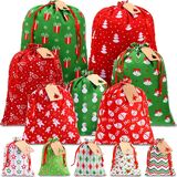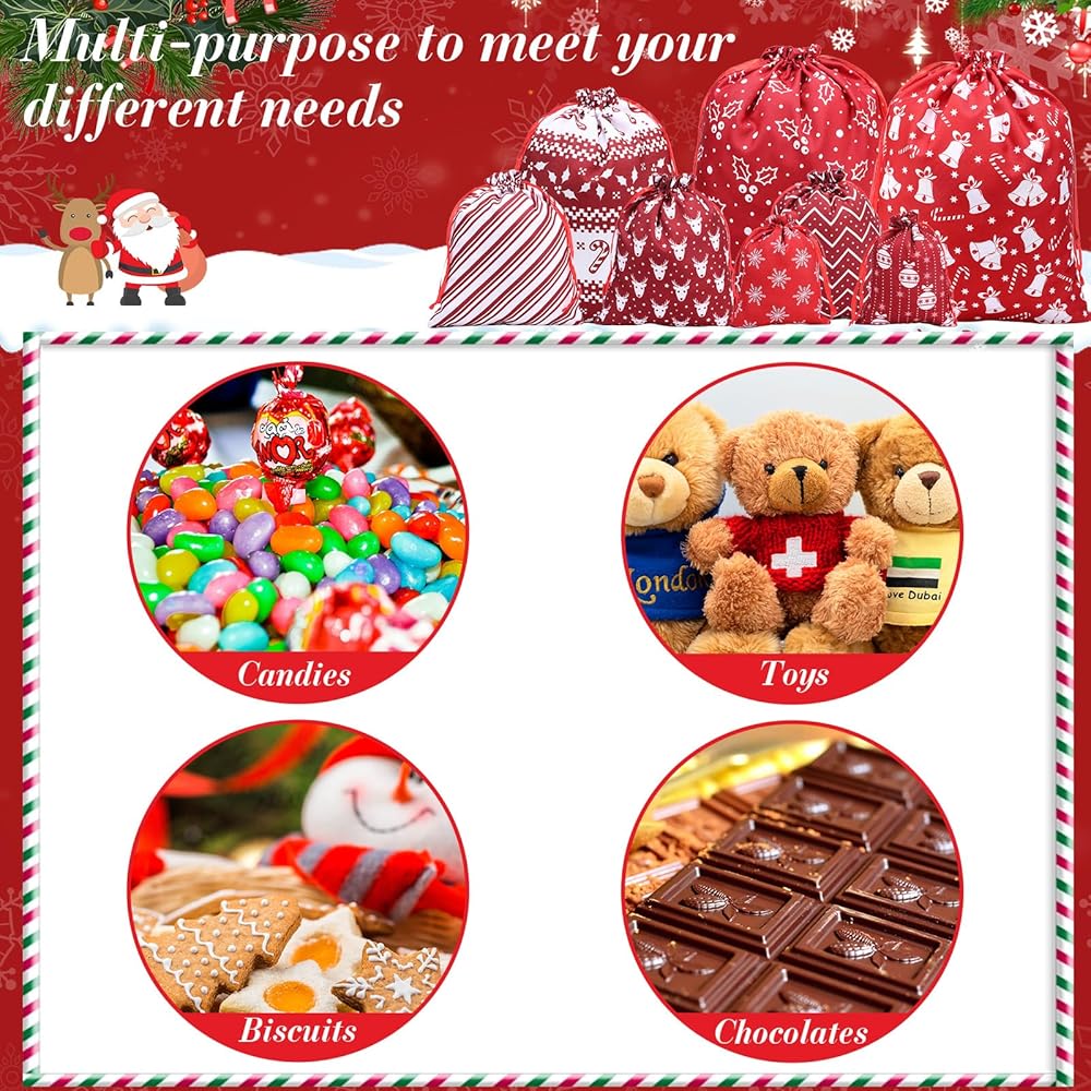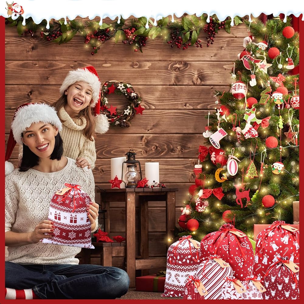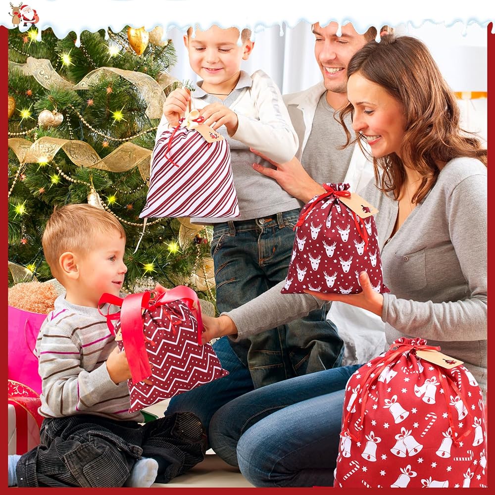 12 قطعة من أكياس هدايا عيد الميلاد برباط من Abbylike، مقاسات متنوعة، أكياس عيد الميلاد قابلة لإعادة الاستخدام، أكياس قماش من القماش سانتا جودي مع العلامات والحبال من أجل هدايا حفلات العطلات، مقاس كبير متوسط صغير (كلاسيكي)