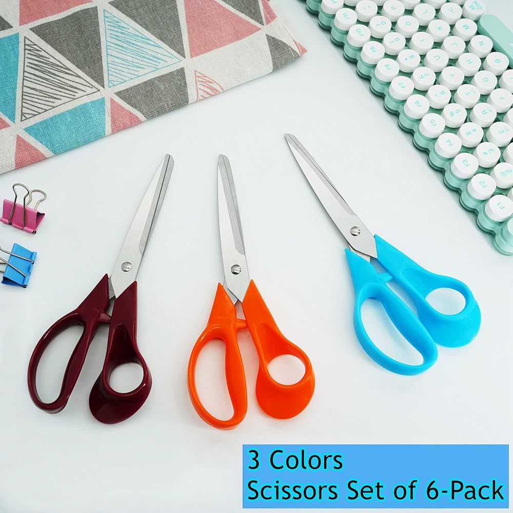 مقص، مقص مكتب لجميع الأغراض، تصميم مريح، مقابض مريحة، مقص حاد للمكتب، المنزل، الخياطة، لوازم النسيج، مجموعة مقصات مدرسية للطلاب، مجموعة من 6 قطع