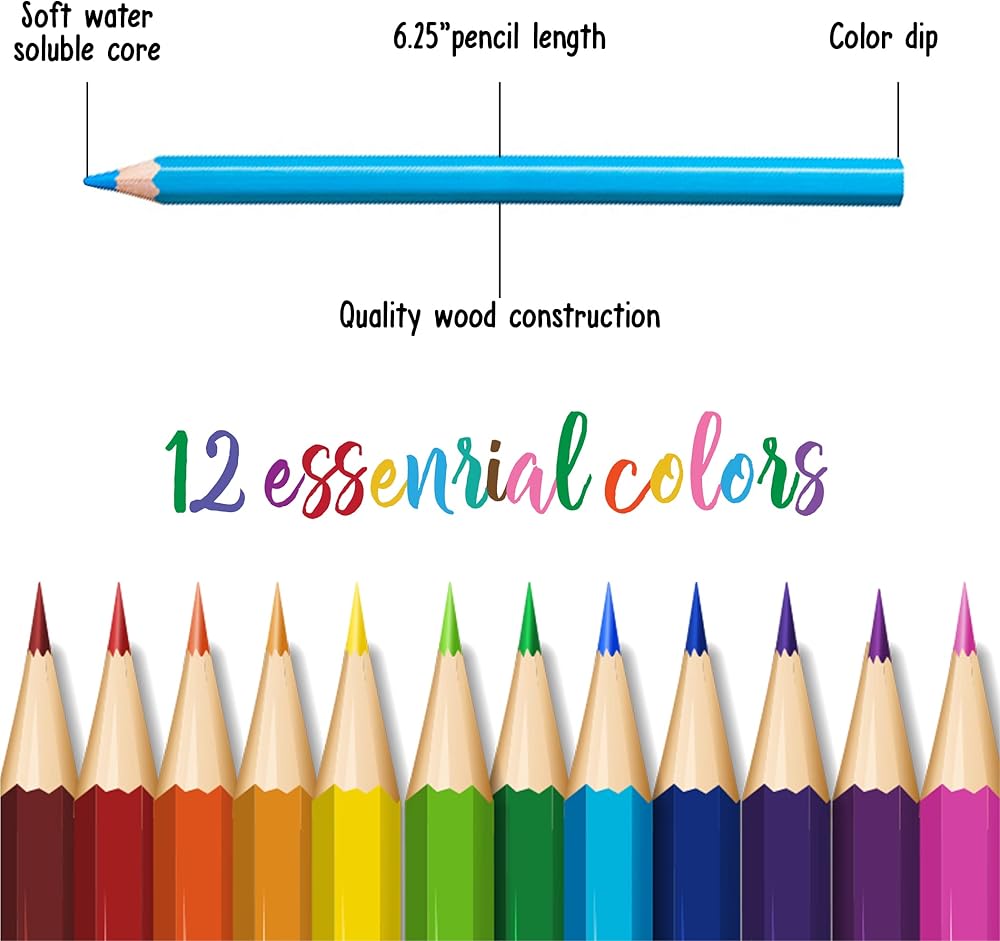 أضف لمسة من الألوان إلى طفولة أطفالك! مجموعتنا المكونة من 12 قلم رصاص هي كل ما يحتاجون إليه للإبداع. بالإضافة إلى ذلك، يمكن مزجها في تركيبات مثيرة لا حصر لها أثناء التنقيط أو الفقس المتقاطع.