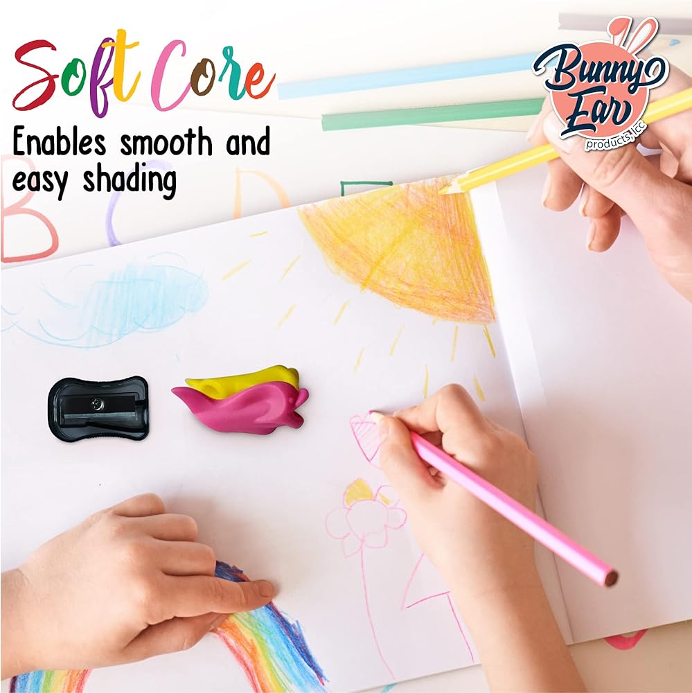 مجموعة من 12 قلم تلوين على شكل أذن الأرنب - مع مقابض ومبراة ممتعة لتلوين سعيد!