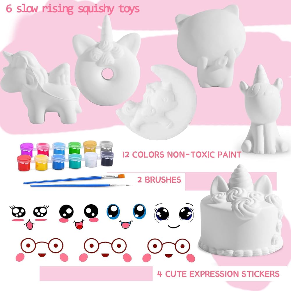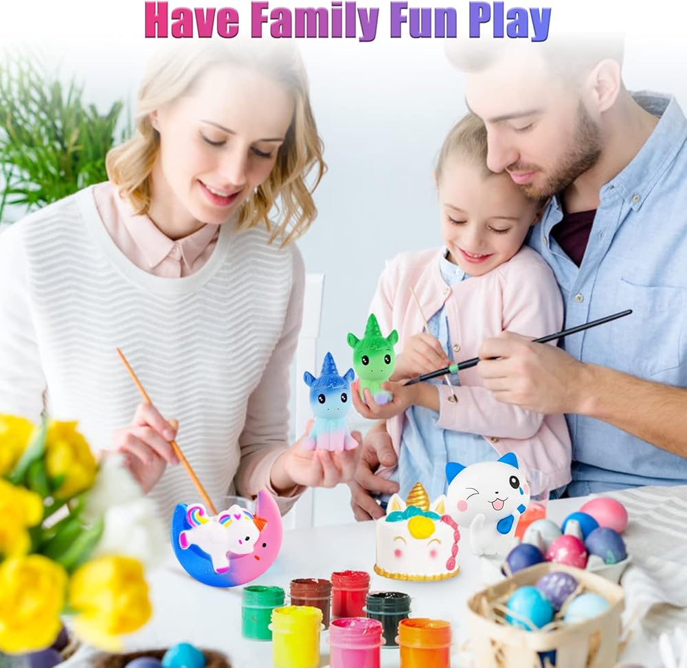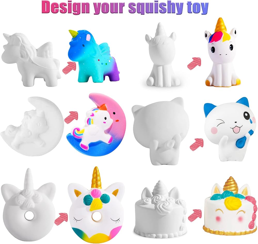 تتضمن مجموعة بينت يور اون سكويشيز اوه سو سويت الخاصة بنا فقط اسفنجات بيضاء ستحتاجها أنت وطفلك لتزيين 6 ألعاب اسفنجية على شكل حيوانات تصنعها بنفسك!